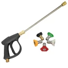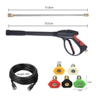 Product Description High Pressure Spray Gun Description: PLEASE NOTE: Fit for M22-14mm thread connector pressure washer hose. Not fit garden hose, regular hose or faucet. Perfect Pressure Washer Gun Kit: MAX 4000 PSI power washer gun with a 1/4 inch outlet quick-connector and M22-14 thread inlet fitting (inside diameter 14mm). Premium Material: The pressure washer gun shell body is made of high-quality engineering plastics, which is more wear-resistant. The valve core is made of aluminium, which has good resistance to high pressure and impact. The pipe is stainless steel material. Last longer, more Long-lasting and leak-proof. Professional Cleaning: 5 pressure washer spray nozzles tips creating 5 patterns for a variety of uses. 0 degree (red), 15 degree (yellow), 25 degree (green), 40 degree (white) and 65 degree (black Soap Nozzle). Great Compatibility: The pressure washer gun fits a M22-14 thread inlet fitting with 14 mm inside diameter. Please confirm the hose interface size before purchasing to avoid leakage. Safe Design: The handle of the short wand high pressure gun adopts a trigger lock design to prevent accidental spraying, make you safer when cleaning the car or the roof. Widely Applicable: Suitable for cleaning cars, pool, windows, roofs, sidewalks, auto detailing business, garden tractor, etc. Easily support your efficient cleaning. Specification: Material: Aluminium+ ABS Color: Black Gun Type: Ergonomic Max. Pressure: 4000PSI Normal Working Pressure: 2175PSI Max. Temperature: 60℃ / 140℉ (Cold water use only) Gun to Hose Connection: M22 - 14 Lance to Nozzle Connection: 1/4" Quick Coupling Size: 17.5 x 17.5cm / 6.9 x 6.9in 26ft Hose Color: Black Material: Rubber Length: Approx.26ft Hose Size: Inter Diameter: 6mm/Outer Diameter: 10mm Working Pressure: Max. 3200PSI Fit in with Connector: Inter Diameter: 14mm / Outer Diameter: M22mm Connecting Thread: NPT Thread Working Temperature: MAX 60℃/140℉ 5 Nozzle Nozzle Details: 0° Red Nozzle Tip: Clean high areas or are as hard to reach such as crevices in sidewalks 15° Yellow Nozzle Tip: Clean brick,concrete and other hard surfaces with stubborn stains. 25° Green Nozzle Tip: Clean wood,fences,painted surfaces,siding and lawn mowers. 40° White Nozzle Tip: Clean screens and windows. 65° Black Soap Nozzle Tip: Spray on detergents. Extension Wand Lance Description: Excellent Pressure: Pressure washer wand extension’s max pressure is up to 4000 psi, fits most pressure washer. During the using time, power washer wand extension can provide great cleaning function. Easy to Install: General M22 14mm Male to 1/4 quick plug (TYPE 1); 1/4'' quick Connector and 1/4'' quick plug (TYPE 2), fit for most pressure washer attachments in the market, including surface cleaner, undercarriage cleaner, foam cannon, pressure washer gun, hose, nozzle tips and adapter. Specification: Material: Stainless Steel + Brass Length: 16” Connector: M22-14 X 1/4” Quick Connector, 1/4 ” Quick Connector X 1/4 ” Quick Plug Max Working Pressure: 4000 PSI Package Included: Option 1 : 1 x High Pressure Spray Washer Gun + 1 x Extension Wand Lance + 5 x Spray Nozzles + 26ft Hose Option 2 : 1 x High Pressure Spray Washer Gun + 1 x Extension Wand Lance + 5 x Spray Nozzles Option 3 : 1 x 26FT Hose Only Option 4 : High-Pressure Cleaning Sprayer Set Option 5 : Adjustable High-Pressure Cleaning Sprayer Set On Jan 24, 2025 at 10:22:06 PST, seller added the following information: