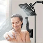 [Two-in-One Handhead Shower Set] 1set High Pressure 6'' Rain Shower Head With Two-in-One Handhead Shower, Equipped 60" Extra Long Hose, 3-Way Diverter, Adhesive Shower Head Holder, Square Shower Head Set
