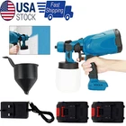 Descriptions: 【Battery Powered Cordless Paint Sprayer】 Without cords and outlets design, you can enjoy the convenience of outdoor operation with the cordless paint sprayer, works on all job sites, which will be a faster tool than a roller or brush. Kindly notes: Batteries are NOT included. 【Powerful Motor 】 150 Watts paint sprayerprovides a precise spray pattern, creating the smooth and superior finish. With 800ml high-capacity container, it will be your best electric paint sprayer for fence, deck, ceiling, tables, chairs and house interior exterior walls 【3 Patterns 】 Comes with 3 different spray patterns, you can easily achieved vertical, horizontal, and circular spraying patterns by adjusting the air cap ears. Versatile options help you complete your painting project efficiently a High Pressure Cordless Paint Sprayer With 2 Batteries Electric HVLP Spray Gun US D escriptions: 【 Battery Powered Cordless Paint Sprayer】 Without cords and outlets design, you can enjoy the convenience of outdoor operation with the cordless paint sprayer, works on all job sites, which will be a faster tool than a roller or brush. Kindly notes: Batteries are NOT included. 【 Powerful Motor 】 150 Watts paint sprayerprovides a precise spray pattern, creating the smooth and superior finish. With 800ml high-capacity container, it will be your best electric paint sprayer for fence, deck, ceiling, tables, chairs and house interior exterior walls 【 3 Patterns 】 Comes with 3 different spray patterns, you can easily achieved vertical, horizontal, and circular spraying patterns by adjusting the air cap ears. Versatile options help you complete your painting project efficiently and easily. 【 Portable & Wide Application】 The cordless paint sprayer gun is lightweight and portable, you can take it anywhere. Thus, the portable paint sprayer allows you to spray a various projects such as coating doors, windows, walls, fences, decking, ceilings, floors, cabinets, home furniture and other objects. 【 Easy to Use & Clean】 With the lightweight body, you can easy to take apart, reassemble and get back at it. When you have completed your painting job, you will need to remove the motor parts and battery, then soak other parts in water to clean. 【 Perfect for all painting projects】 As they strain out particles down to 190 microns. and work for all types of solvent or water-based paints, stains, varnishes, epoxy, latex and other liquids. So before use this paint sprayer, please make sure to dilute the paint according Specification: Motor: 150W Maximum flow: 200ml/min Maximum viscosity: 8-12s Capacity: 800ML Speed: 30000RPM Power Supply: Battery Battery Quantity:2PCS Plug: US Package List: 1 * Paint Sprayer 1 * Sprayer Cup 2 * Battery 1 * Charger 1 * User Manual Note: The machine Adapted for 18V Makita battery compatible for 18V B series lithium battery,such as BL1850B(197285-8),BL1840B(197270-1),BL1830B(197602-2),BL1430B(197618-7),BL1820B(197487-6); compatible for BL1850,BL1840,BL1440(196391-6),BL1415(194560-3),BL1815N(196781-3); NOT compatible for G Series battery such as BL1813G(196663-9) BL1413G(196882-7) BL1415G BL1430G BL1815G and so on NOT compatible for 18v Ni-CD battery such as 1822(194465-7) Payment Shipping Return Contact us About us Payment 1.Paypal, Credit Card, G Pay etc, many payment way is accepted. 2.Please be sure your shipping address is correct before make a payment. Shipping 1.We are shipping from multiple warehouses (Houston, Texas/ Corona, California) , please note before placing an order 2.We will ship out the item within 1-3 business days after comfirming the payment, appreciate your patience. 3.If the items are broken on the way( we will check the orders clearly before we sent them ),please contact us in 3 days you received it. We will send you a new one or refund your payment. Return 1.We stand behind every buyer.Items can be returned for exchange or refund within 30 days. 2.Please contact us when you have any confusion of our item, we will solve the trouble for you as soon as possible. Contact us 1.This is professional Seller.We will reply your message within 24 hours. 2.Please contact us whenever you have any question about the item. We will deal with it as soon as possible. 3. If you are unhappy with the item or our service,please Contact Us before leave feedback,just give me a chance,thank you! About us 1. Unless specified otherwise, all our products are IN STOCK and are shipped from Local warehouse - Not Overseas! 2. We provide a 30 day Satisfaction Guarantee or your money back (provided items are in the same new and resaleable condition.) 3. We have a PayPal Verified Business Account, please buy with Confidence! 4. Every item will be tesrted before send.We know our products well and if we don't have the answers we will do our best to find them for you! 5. Our friendly team look forward to serving you! Your satisfaction is our No.1 Priority We will do our best to satisfacy you.