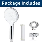【ABS environmental material】:The shower is made of advanced ABS environmental protection material. Ensure hard and durable at the same time, the handheld shower can effectively heat insulation. Stainless steel hose makes the shower set lightweight, high toughness and rust-proof. 【Purify the water】:Health is the thing we value most. Our showerhead has a Filters made of Adsorption cotton. It is more effectively removes impurities and residual chlorine, heavy metals (lead, mercury, nickel, chromium) and other harmful substances from the water than the regular stone filter. Enjoy your shower and improves your skin and scalp environment. Improves your health. 【High pressure &Water saving】: The shower has a large 4.9-inch panel with a unique internal space structure and pressure boosting technology. It provides a full-coverage showering experience even under low water pressure. Let you fully enjoy the pleasure of showering. 【3-Spray Functions】:This handheld shower has 3 selectable modes, and when you rotate the handle on the shower panel, you can easily switch between the different modes you want. The water column in massage mode will rotate to achieve a comfortable massage effect. The interesting combination of various modes can help you eliminate the fatigue of the day. 【5 minutes quick installation】Easy to install and disassemble by yourself DIY, Suitable for rental rooms,no plumber needed. Really convenient for daily use and regular cleaning. Adopt universal G1/2 threaded interface, suitable for any standard hose. .Any questions, please feel free to contact our professional customer service.