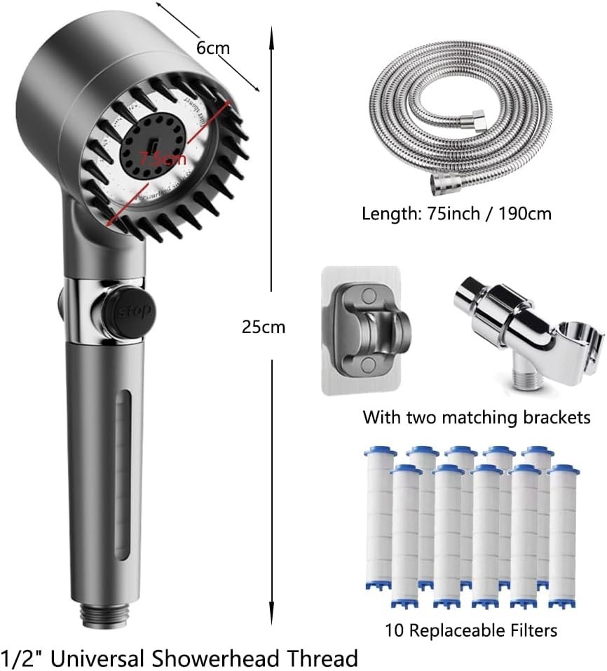 Filtered Shower Head with Handheld, High Pressure, 10 Replaceable Filters, 3 Modes ION DROPS SHOWER HEAD: Transform your daily routine with the ION DROPS Shower Head. This innovative shower head features a unique ionization technology that helps purify your water, resulting in softer skin and hair. The ION DROPS Shower Head is perfect for anyone looking to elevate their shower experience while enjoying the benefits of cleaner, healthier water. POWERFUL WATER PRESSURE: Experience the invigorating power of our High Pressure Shower Head with handhled, designed to deliver a powerful and relaxing shower experience every time. Its sleek, modern design complements any bathroom decor, and the adjustable spray settings allow you to customize your shower experience, from a gentle mist to a powerful blast. 3 SPRAY MODES SHOWER HEAD: Elevate your daily cleansing ritual with our 3 Spray Modes Drvise Shower Head. Designed for versatility, this shower head features three distinct spray settings - a refreshing rain, a powerful massage, and a soothing mist. Enjoy the luxury of customizable water pressure to suit your mood, all while conserving water. Upgrade your bathroom and indulge in a spa-like experience every time you step into the shower. FILTERED SYSTEM: 10 Replaceable Filters. upgrade your bathing experience with the Shower Filter Head for hard water. Designed to reduce impurities in your water, this innovative shower head not only enhances water quality but also promotes healthier skin and hair. The easy installation process ensures you can start enjoying fresher showers in no time.We recommend that you replace the filter cartridge every 2-3 months depending on water quality and usage. FAMILY FRIENDLY DESIGN: We offer two types of brackets for your choice. Easy to install and built to last, this filtered shower head is perfect for anyone looking to enhance their daily routine with a luxurious shower experience. It offers relaxation and pressure relief after a long day, perfect for everyone’s skincare and hygiene routine Shipping & Handling - Processing Time: 3 – 7 business days (excluding weekends and holidays). - Standard U.S. Shipping: Estimated delivery within 2 – 9 business days. - International Shipping (Worldwide): Average delivery time is 7 – 10 business days. Some locations may take up to 15 business days. Terms of Sale - We reserve the right to decline payments from unverified PayPal accounts or in cases of suspected fraudulent activity. - We may end listings early if there is an issue with the item. - If you receive a defective product or the wrong size/item, we will offer a refund or reshipment. Please provide clear photos of the issue for our reference. - Note: Shipping fees are non-refundable. Feedback Policy - Positive feedback will be left after payment is received. - If you're satisfied with your purchase, we would greatly appreciate your positive feedback and 5-star rating – it helps our store grow and continue to provide great service. - If there’s any issue with your order, please contact us first before leaving neutral or negative feedback. We are committed to resolving your concerns promptly. Contact Us - If you have any questions, feel free to send us a message through eBay. We aim to respond within 24 – 48 business hours to ensure you have a smooth and pleasant shopping experience with us.