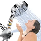 How Ours Filter Works ? 1.[ Filtration Stage ] Remove Chlorine,Fluoride,Heavy metals,Sediment,Dust, Harmful impurities 2.[ Soften Stage ] Energize water with oxygen to improve your skin, hair, and restore your oil and water balance 3.[ Rejuvenation Stage ] Infuses the water with Vitamin C and other beneficial elements Package Details Handheld shower head *1 15 stage shower filter *1(Already in the Shower head) Explosion-proof shower hose *1 Shower bracket holder *1 O-washer *4 Mesh-washer *1 Teflon Tape *1 User Instruction *1 【Bathroom Essential】Newly upgrade water softener shower head filter. which is more water saving than regular shower. The powerful water pressure is gentle enough on your tired body all in minutes.The fashionable and simple design bring you a whole new shower experience. The ergonomic design of the shower head fits perfectly in your hand, it is used by child , adults , pet , bathing and cleaning applications 【8 Spray Modes 】High pressure shower heads offers 8 different shower modes to suit your needs -Saturating Spray Mode,Saturating Massage Mode,Massage Mode,Massage Misty Mode,Misty Mode,Saturating Sweeping Mode,Sweeping Spray Mode,Pause Mode.Simply turn the controller to select your favorite spray mode. The steady flow and high pressure can fully relax your muscles, relieve fatigue. 【2 Modes JET & FAN】Unique design for bathroom and pet cleaning.Got unwanted residue or lost hair on your tub or tiles after every shower? With the Jet mode, you can easily remove in just seconds, eliminating the need for tedious manual cleaning. The Fan mode provides powerful water pressure that can not only clean your pet's body but also provide a relaxing massage to relieve fatigue. 【Shower Head Filter for Hard Water】Upgraded filtered shower head features a 15-stage filter system ,which includes alkaline ball + medical stone + activated carbon + filter cotton + stainless steel mesh etc. This hard water filter shower head help remove chlorine, dust, rust, bad odors and deposits,improves the condition of skin and hair health.Enjoy the cleanest shower experience with your family. 【Easy Installation & Maintenance】No plumber plumber - can install our high-pressure shower head combo set in just minutes! Our shower heads use a universal G1/2 threaded connector, which fits most family, and everything you need is included in the package. If you have any questions about our products, you can easily contact us by Amazon, and we'll provide you with the best customer service within 12 hours.