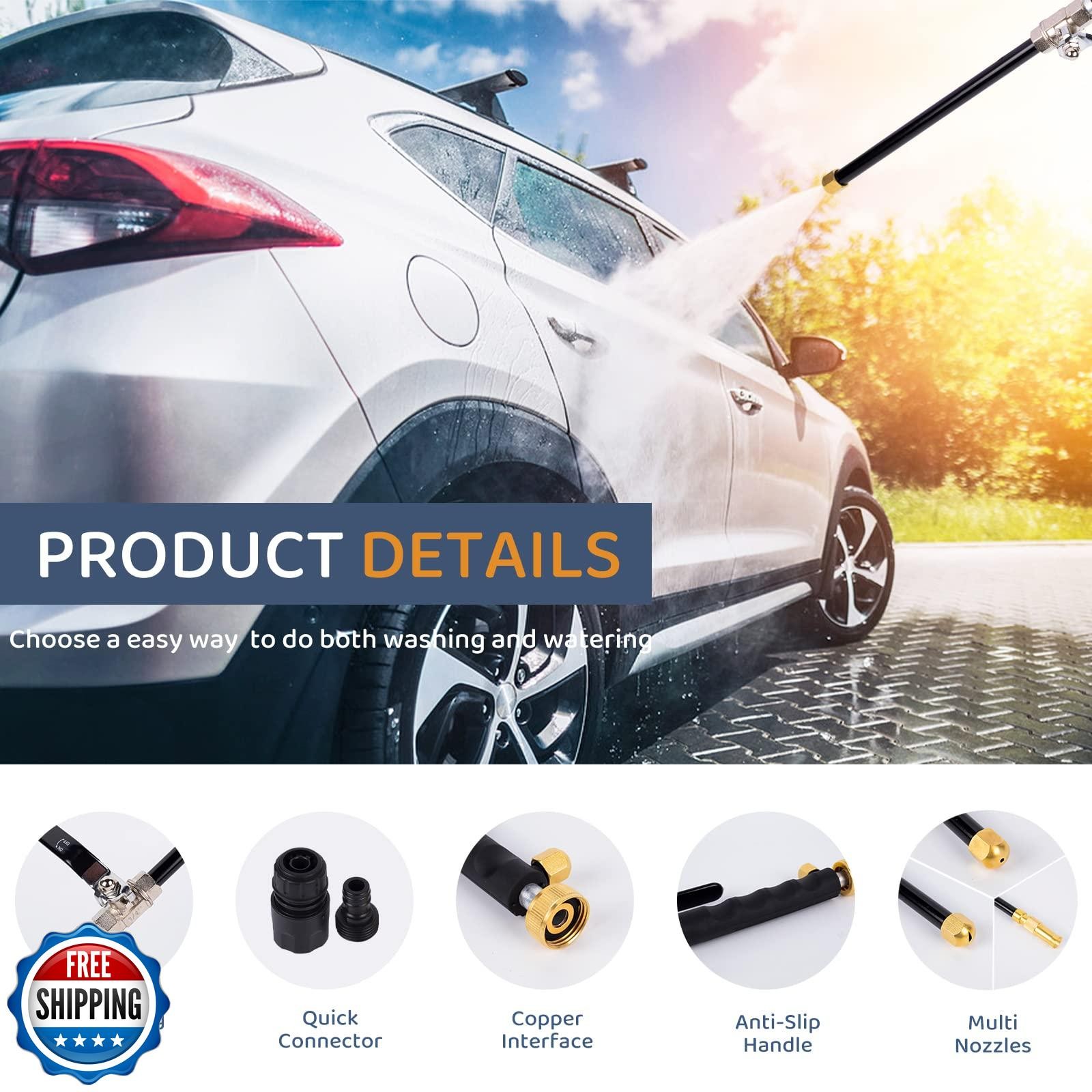 High Pressure Jet Nozzle Power Washer Wand for Garden Hose, Hydro Jet High Pressure Washer Tools with 3 Different Nozzles and Hose Quick Connectorsfor Patio Car Pet Window Glass Black Features 【3 Different Nozzles】Our high pressure water washer wand for garden hose is engineered to optimize your experience, leak-proof design, coming with 3 spray tips (one is jet stream, one is fan spray, and 1pc adjustable twist nozzle ) for more convenient usage. Please note that the pressure mostly depends on your water system pressure. If you need extra water pressure, you can use the water wand with a pump or car washer together. 【Exquisite Design】Our hydro jet high pressure power washer wand is specifically designed for garden hoses, the high pressure washer wand fits well with 3/4” standard hose, 1/2” garden hose, as well as other sizes of standard 1" hose connectors. You won't need to purchase additional adapters, and you can connect and use it quickly and easily. 【Corrosion and Rust Resistant】 Our jet nozzle power washer for garden hose is made of solid copper interfaces, a metal wand, a thickening switch, and an anti-slip handle, ensuring it is corrosion and rust-resistant. Its solid design and advanced materials make it resistant to rust, deformation, and rupture over time. 【Widely Application】 Watering sprayer cleaning tool can be used for car washing, home cleaning, garden Watering, agricultural Irrigating, window washing, plant watering and other situation you want. This wand is perfect for cleaning wood fences, brick walls, sidewalks, car, bricks, rocks, car wheel, truck, campers, boats, windows. 【Excellent Customer Service】We are committed to providing excellent customer service and guarantee to respond to your questions and solve your problems within 24 hours. If you have any questions or concerns about the hydro jet high pressure power washer wand, please feel free to contact us, and we will solve your problem at any time. Shipping Free & Fast Shipping: We offer free shipping to most of the USA with a normal delivery time of 3-7 days. However, due to the current situation, additional delivery time (up to 3 weeks) may be required for some items. Alternative Carriers: We may use alternative carriers (e.g., USPS, FedEx, UPS) to ensure your package arrives safely and on time. Due to the use of multiple carriers, we are unable to provide a tracking number automatically. Handling Time: Orders are processed and shipped within 1-2 business days of receiving cleared payment. Shipping Restrictions: Shipping to Alaska, Hawaii, Puerto Rico, Guam, and other US territories may incur shipping charges or delivery restrictions. Please contact us before ordering, or your order can be refunded/cancelled. State Restrictions: Certain items may not be shipped to California due to state regulations. Contact for Tracking Updates: If you require tracking updates or have any concerns about the delivery of your order, please feel free to contact us, and we will be happy to assist you. Return Policy 30-Day Hassle-Free Returns: If you are not completely satisfied with your purchase, you can return the item for free within 30 days of receiving it for a full refund or exchange. Easy Return Process: Contact us, and we will provide you with a prepaid return shipping label and detailed instructions. No Restocking Fee: There are no restocking fees for returns. However, the buyer is responsible for return shipping costs if the return is not due to a seller"s error. Refund Processing: Refunds will be processed within 1 business day of receiving the returned item in its original condition. Feedback Your feedback is extremely important to us. We strive to provide the best products and customer service possible. If you are satisfied with your purchase, please take a moment to leave us a positive review. If you have any concerns or issues with your order, please contact us before leaving negative feedback. We are committed to resolving any problems and ensuring your satisfaction. Contact Us If you have any questions or concerns, please feel free to reach out to our customer support team. You can contact us through the eBay messaging system. We are available Monday to Friday, 9:00 am to 5:00 pm EST, and we will do our best to respond to your inquiry within 24 hours. Thank you for supporting our small family business!