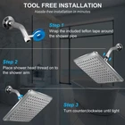 【High pressure Shower Head】-- Rain shower head makes the water droplets plump and supple through air injection deal for Low Water Pressure Home.121 silicone nozzle, high pressure and high flow, can produce rain effect even under low water pressure, no longer have to worry about shampoo splashing on hair when shower water pressure is too low. At the same time saving about 30% water than using any ordinary shower head, effective for removing fatigue and easing your body. 【Self-cleaning Function】-- Our waterfall shower head has a quick descaling function, and the 121 silicone nozzles are made of high-elasticity special rubber particles, which are easy to clean, long service life, and suitable for hot and cold temperatures, reducing subsequent maintenance costs , save worry and effort and save money. 【High Quality Chrome-plated Material】--Excellent corrosion resistance, bright and colorfast, as new for a long time! Resists clogging and cracking from rust, durable performance, our rainfall shower heads adds a stylish touch to your decor, and a multi-layer electroplating process resists corrosion and tarnishing in everyday use in wet environments. 【360°Adjustable Metal Ball Connection Design】-- The adjustable ball connection design makes fixed shower head flexibly adjusted to suit your angle or direction, making the shower more comfortable. Standard G1/2 threaded connection to fit most shower pipes. Easy wall mounting without tools; Teflon tape included in the package can be used to secure a ceiling-mounted rain shower head or attach to an adjustable angle shower arm. 【Service Guarantee】--provides good after-sales service. Our high flow showerhead are produced in accordance with strict quality standards, with long service life and high reliability. It is guaranteed that the products will never be sold twice. If you find any problem with the product, please contact us, we will solve the problem in 24 hours!