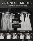 rain shower head Multiple Spray Modes: Experience the ultimate shower experience with 23 customizable spray modes, including 5 handheld, 3 rainfall, and 15 combo settings. Find the perfect mode to suit your mood and enjoy a personalized, refreshing shower Height and Angle Adjustable: Create a tailored shower experience with versatile features. The 11-inch extension arm offers height adjustment, and the overhead angle adjustment knob, along with the handheld mount angle adjustment, lets you customize the spray angle to your liking Powerful Flow: Our shower head guarantees a powerful water flow with high pressure and anti-clog nozzles. This ensures a refreshing and efficient shower, maintaining consistent performance for long-lasting enjoyment Easy Installation: Experience easy installation with our simplified design. Easily upgrade your shower without the need for professional tools or help Built to Last: Crafted from durable materials, our shower head stands the test of time. It's designed to resist wear and tear, ensuring it maintains its quality and performance over an extended lifespan