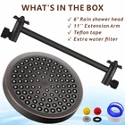 High Pressure Rain Shower Head with 11'' Extension Arm - High Flow Rainfall Showerhead - Luxury Modern Look - Pressure Boosting (Oil Rubbed Bronze) Product Details Size: 6" Shower Head with 11" Arm Color: Oil Rubbed Bronze Brand: Nuodan MPN: ND-DJM-804 UPC: Does not apply EAN: Does not apply Brand: Nuodan Style: Modern Shape: Round Material: ABS Plastic, Brass, Chrome Finish Type: Bronze Brand: Nuodan Style: Modern Shape: Round Material: ABS Plastic, Brass, Chrome Finish Type: Bronze Setting Type: Rain Installation Type: Wall Mounted Color: Oil Rubbed Bronze Product Dimensions: 6"L x 11"W Hose Length: 11 Inches Number of Jets: 1 Efficiency: water-saving Special Feature: High pressure and air-in technology, adjustable brass shower arm, water-saving flow restrictor Manufacturer: Nuodan LLC Part Number: ND-DJM-804 Item Weight: 1.32 pounds Country of Origin: China Item model number: ND-DJM-804 Size: 6" Shower Head with 11" Arm Finish: Bronze Flow Rate: 2.5 Gallons Per Minute Special Features: High pressure and air-in technology, adjustable brass shower arm, water-saving flow restrictor Included Components: Shower head,Shower extension arm,Teflon tape, Extra filters, Flow Restrictor Batteries Included?: No Batteries Required?: No Date First Available: November 19, 2023 ENJOY A POWERFUL RAIN SHOWER EVEN IN LOW PRESSURE AREAS - 90 silicon nozzles. The combination of high pressure and air-in technology leads to strong flow. it's the ultimate way to bring a piece of spa luxury to your home. BRASS ADJUSTABLE SHOWER ARM - 11" Shower extension arm. Made from solid and solid brass. Not worry about breaking or leaking. Adjust the angle and height you want to achieve a better rainfall effect. STYLISH, NICE LOOK - High-quality ABS plastic body polished chrome shower head, more durable and beautiful. The rubber nubbins (spray outlet holes) are made of high-grade soft rubber, that will allow you to easily wipe away calcium and lime build-up. A low maintenance shower head for years to come. INSTALLS IN MINUTES - No need any tools. Simply screw on and turn on your new waterfall shower. In order to make it easier to install, we have prepared a special wrench and a teflon tape. WATER SAVING - The kit also includes a 2.5 GPM and california compliant 1.8 GPM flow restrictor, helps reduce water pressure, no more wasting hot water while getting soaped up. So you can save on your water heater bill or enjoy longer hot showers. BRAND PROFESSIONALISM AND ADVANTAGE - At Nuodan, we strive to deliver quality shower heads high pressure products to our customers because we believe in "Transforming your shower experience" and so does our dedicated Customer Happiness team available every day of the week to answer any of your questions.