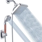 SPA AT HOME - 's new filtered shower head contains an enhanced version of high-Activated Carbon, C and Mineral/Ceramic Balls, which filters twice more water softener, Remove chlorine and heavy Metals and odors, allowing you and your family to take a shower in clean water. RAINFALL SHOWER HEAD - It's luxury looking made from rustproof ABS plastic with chrome plated. It can jet out high-pressure rain of hot water which let your whole body van feel the downpour. Its swivel ball connector can adjust to any angle you like, giving you a hotel waterfall shower experience. HIGH PRESSURE HANDHELD SHOWER- Double-filtered water effectively reduces residual impurities in the water for smoother, healthier skin, 3-spray shower setting and a 59-inch-long shower hose,It is also ideal for Bathing , Washing Pets and Cleaning applications. PACKAGE INCLUDES - 6" square shower head, 3 spray handheld shower, 59" hose, 3-way diverter, self-adhesive bracket, flow restrictor, Teflon tape. EASY TO INSTALL: 1/2” connector fit for any universal shower arm. No tools required. Simply screw on by hand. (Black water comes out during the first rinse.) If you have any problems or questions, Please us through . We will get back to you within 24 hours.