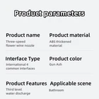 Specification Product name: Three-speed shower head Product material: ABS thickened material Interface type: four-point universal interface Product color: gun gray Product function: Three levels of water discharge Applicable scene: bathroom Product size: 3.9*3.9*11.8 【Practical 4 Functions Spray Modes】: Removable shower head with hose with handheld just design with the most practical 4-water outlet modes, including full-body rainfall mode, power focused mode, relaxing massage mode and pause mode for water saving. which can meet all the usage requirements, without the need to set redundant modes to make the use process complicated. 【Superior Material】: This advanced shower head with handheld with chrome plated ABS environment-friendly materials, and the exterior is made of multi-layer baking paint to make it anti-corrosion, rust proof and resistant. The high temperature shower head is more solid than the general shower head 【Improve Water Flow Intensity And Stability】:Achieve the perfect water pressure for a truly invigorating shower. The high flow Shower Head features high water pressure capabilities, allowing you to enjoy an energizing shower experience that leaves you feeling completely refreshed and rejuvenated. 【Water Saving with Great Pressure】: The shower head is more water saving than regular shower, The high flow shower head is engineered with micro technology It has amique internal space structure and pressure boosting and equipped with powerful 150 outlet holes, Makes the outlet holes smaller and denser and saving water up to 30% simultaneously. The powerful water pressure is gentle enough on your tired body all in minutes. 【Use Manipulation】 : Special attention, the back of the button switch must be pressed to the end, and then the water volume is adjusted to the maximum, so that you can see the pressurization effect