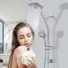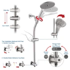 Rain Shower Head with Handheld Combo: Dual shower head combo includes 7.5 inch rainfall shower head and handheld shower head with 10 different modes, use shower head separately or both showerheads together, with variety of combination modes Adjustable Height Slide Bar: Slide bar shower combo can adjust height to accommodate both kids and adults, low 3-way water diverter & slide bar for easy reach, must have minimum clear 26" vertical wall space between overhead shower arm and mixer valve High Quality Material: High pressure shower combo made of ABS material, ensuring that has scratch-resistant, lightweight, corrosion-resistant, durable surface for shower head, features self-cleaning anti-clog nozzles to prevent accumulation of grime Powerful Jet Cleaning Function: Powerful shower head converts low water flows into high pressure shower head, use jet mode to clean your bathtub, or toilet, foam on the walls, and soap scum on the floor, with 5ft stainless steel hose for easy to clean Customer Support: Our shower head combo come with detailed suction cup installation reference videos, you just need to follow the instructions step by step to easily install your shower combo, welcome to contact us if you have any questions or concerns