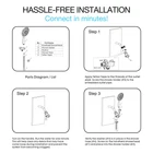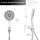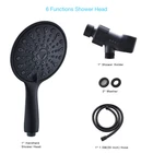 hand held shower head MULTIPLE SPRAY 6 SETTINGS: The powerful and multi-functional handheld showerhead has 6 different spray patterns include Expanding Spray, Rain, Massage, Rain+ Expanding Spray, Rain+ Massage spray, Pause (Left), Pause(Right) modes which make pressure boosting effect for ultimate shower experience even at low pressure. LIGHTWEIGHT AND FLEXIBLE: The shower hose measures 6 feet which delivers real flexibility and convenient washing experience, to use in cleaning the tub/shower combination or your pets. ANGLE-ADJUSTABLE OVERHEAD BRACKET: Angle adjustable shower hold with swivel brass ball joint lets you point hand shower where you want it for hands-free operation at desired angle, enable you to relax and enjoy a natural SPA at home. HIGH-QUALITY MATERIALS: The shower head body and bracket mount are made with highest quality chrome plated ABS materials, sturdy and durable, no toxic or lead. The TPR soft silicone nozzle prevents mineral accumulation and is easy to remove with your fingers. Stainless Steel Hose make the high-pressure shower head set light, high strength and no rusting or fading. EASY INSTALLATION: Everything is included for easy installation. No need to call a plumber, installs the handheld adjustable shower heads with hose in minutes with just one hand-tighten connection. Fits any standard shower arm.
