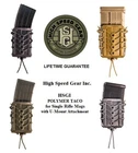 WE OFFER SUPER FAST & FREE 50 STATE SHIPPING & HAVE EXCELLENT FEEDBACK !!! Thanks for visiting ROCK MOUNTAIN TACTICAL ! We are Authorized Full Line dealers for several high quality brands like: Magpul, Ajax Grips, Viking Tactics, ODIN Works, GG&G, Eberlestock, Emerson Knives, Savvy Sniper Slings, Wilson Combat & many other excellent name brands. We have 1000s of items in stock: all types of parts and other gear. Please Visit our eBay Store at Rock Mountain Tactical - since 2006. On Time. On Target. NEVER QUIT !!! USE THE DROP DOWN MENU ABOVE TO CHOOSE DESIRED COLOR OR CHECK INVENTORY LEVELS . Listing is for (1) NEW High Speed Gear - HSGI - 16TA00 - POLYMER TACO - SINGLE RIFLE MAG POUCH with the Universal Mounting system (U - Mount), In YOUR Color Choice! BRAND NEW LIMITED EDITION MULTICAM Version just received. Check them out! HSGI SKU # - 16TA00 The POLYMER TACO SINGLE RIFLE Mag Pouch with U-Mount system NOTE: Listing is for the POLYMER TACO Rifle Mag Carrier only, the other items & mags shown in images are not included and are used for reference only. Description: - The HSGI line of polymer TACOs ® function much the same as their nylon counterparts. - The body & brackets are made with our durable and flexible, proprietary polymer and are laced together with bungee cord for the same versatility our customers have come to expect from the TACO ® brand. - As with the originals, these single rifle mag pouches grip & retain a wide variety of rifle magazine styles in various calibers and capacities (as shown by images) • Mounts to both MOLLE and belts up to 2” with our new HSGI ® Universal Clips (clips are included) • Push button Pop-lock configuration orients excess bungee down and out of the way • Features grommets for drainage • Made with waterproof materials (does not waterproof inserted items) • Flared tops enable easy reinsertion of magazines • Opposite magazine catch channels inside rifle magazine portion enable smooth insertion of both left- and right-facing rifle mags • Universal mounting hole configuration works with most mounting hardware for custom gear set ups. - Covered by HSGI's ® Lifetime Warranty. Proudly Made in the USA. Dimensions - Standard: 3.0” L x 1.5” W x 4.5”H Weight - Standard - 2.88 oz. Dimensions - Metric: 7.62cm x 3.81cm x 11.43cm Weight - Metric - 81.64 g