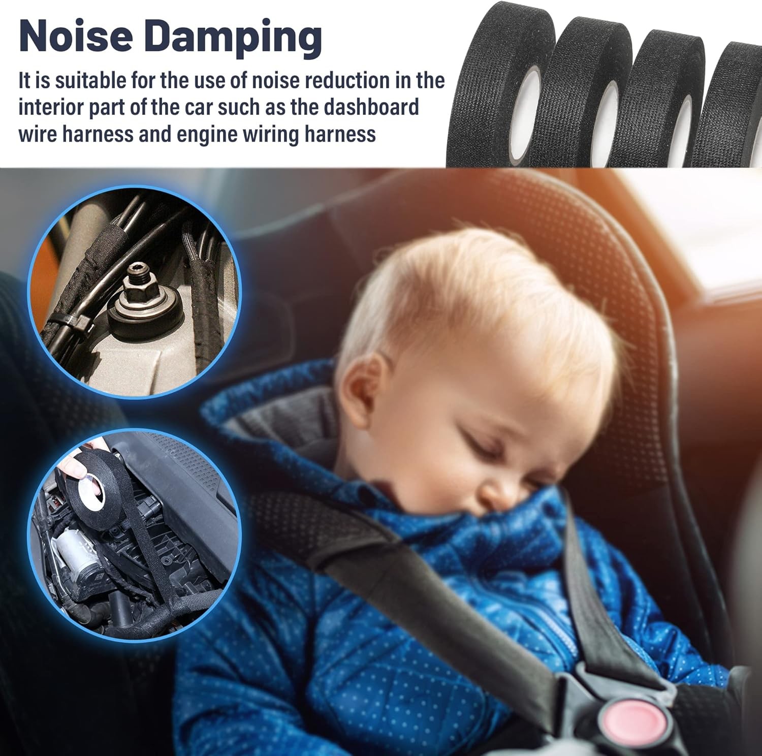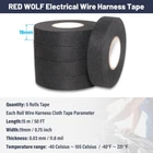 Description: Type: Bonded wiring tape Product features: sound-absorbing Wire loom harness tape is flexible and wear-resistant, resistant to aging, hand-tearing Color: black Length:15 m / 49.2 FT Width:19mm / 0.75 inch Thickness: 0.03 mm / 11.8 mil Temperature range:-40 Celsius ~ 105 Celsius / -40°F ~ 221 °F Strong adhesive force, No harmful substance Not easy to corrosion, Reduce noise, It is not easy to wear Soft and strong expansion, Temperature stability Anti pollution ability strong surface Widely application: The material of wire harness cloth tape is soft and corrosion-resistant, which is suitable for the use of wire harness in automobile interior noise reduction part, such as wire harness of the dashboard, main harness wound and applied for wire joint and wire fixing; It can also sort out home appliance wiring and more Easy to tear: Just stick one end of tape to cable, start pulling and wrapping onto the cable and tear it gently; No need scissors and other tools; You can decide the length of the wire cloth tape according to you needs Professional cloth tape material: It is made of polyester non-woven fabric and strong acrylic pressure sensitive adhesive; High viscosity, high temperature resistance ( -40°F to 221°F ), well seal and excellent flexibility Excellent performance: The wiring harness tape maintains features high adhesive force, good noise reduction, hand tearable and heat insulation performance, and wear resistance; It is suitable for electrical automotive engine and circuit maintenance to achieve the purpose of insulation protection Specification: A set of 5 rolls wire harness cloth tap; SIZE: Each roll black electrical harness tape is 50 FT long and 3/4 inch wide; It is work for your different daily needs in diversified use scenarios