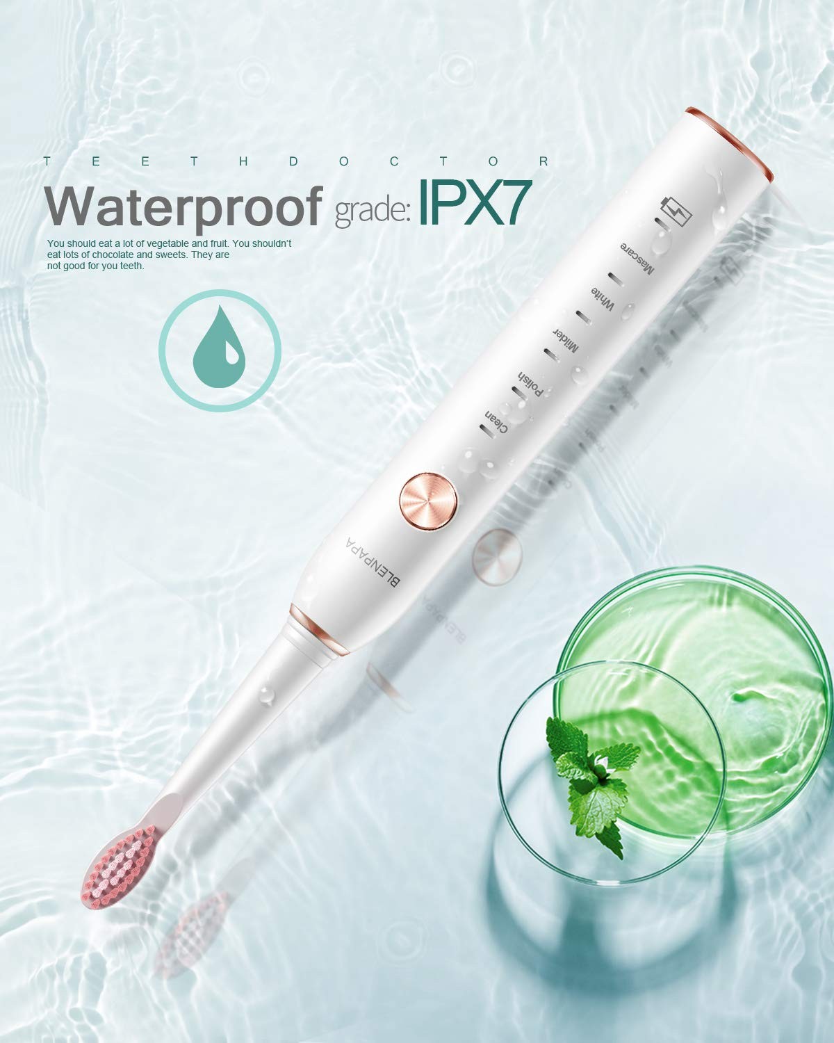 ❤ FAST CHARGE & LONG LAST - The charging indicator light flashes to remind the electric toothbrush needs to be charged. Last a total of 30 days of brushing cycle (2 minutes/2 times/day) after only 2-hour fully charged. IPX7 waterproof for easy water rinsing after each use. ❤ 2 MINUTES INTELLIGENT TIMER - There is a short pause every 30 seconds in use. This is the 2 MINUTES INTELLIGENT TIMER to remind you to balance the four areas of your mouth and to reach dental professional recommended brushing time. ❤ 5 OPTIONAL MODES - Customized your brushing experience with 5 modes: Clean mode, Polish mode, Milder mode, White mode, Mascare mode. 5 different modes fit for different conditions of teeth and gums and even take full care of your sensitive oral and teeth. ❤ DUPONT BRUSH HEADS - The bristles are made with dupont nylon which are soft, wear-resistant and non-absorbent, provide you a safe and gentle brushing experience. W-wave brush heads perfectly fit each tooth and better remove stains. ❤ HIGH VIBRATION - Sonic electric toothbrushes employ strong powered motors to achieve 38,000 strokes per minute. Effectively clean your teeth and gums. Item Firmness Description Soft Age Range (Description) Adult Brand Blenpapa Manufacturer Blenpapa Batteries 1 Lithium Ion batteries required. (included) Item model number XM-801 Power Source Battery Powered Special Feature Brushing Timer, Customizable Package Dimensions 8.98 x 3.23 x 1.65 inches; 5.29 ounces 7004041