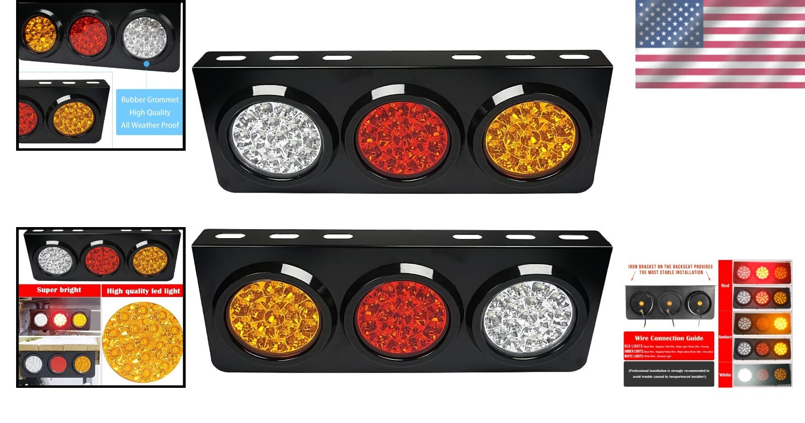 High-Intensity 48 LED Universal Trailer Lights - Waterproof with Iron Support ‹ › ‹ › ‹ › ‹ › ‹ › ‹ › ‹ › ‹ › ‹ › ‹ › High-Intensity 48 LED Universal Trailer Lights Product Overview Illuminate your path with unparalleled brilliance and style! Our High-Intensity 48 LED Universal Trailer Lights are designed for optimum visibility and safety. Waterproof and equipped with a robust iron support, these lights are the ideal accessory for trailers, trucks, campers, boats, and any DC12V/24V system. Give your vehicle the upgrade it deserves, enhancing both its safety features and appearance! Features: Universal Compatibility: Compatible with any DC12V/24V system for versatile application on trailers, trucks, campers, UTEs, UTVs, boats, caravans, flatbeds, and more. Strong Iron Support: A durable iron bracket on the back provides exceptional strength, ensuring stability and resilience in tough conditions. Bright & Efficient LEDs: Adopts the latest SMD LED technology featuring 48 super-bright LEDs, offering greater illumination than halogen bulbs while being energy-efficient. Waterproof & Weather Resistant: Having a waterproof rating of IP68, these lights effectively shield against dust, moisture, and harsh weather, prolonging lifespan and performance. Customizable Positioning: Amber, red, and white round LED lights are easily removable from the iron bracket base, enabling convenient replacement and customization. Installation Made Easy: Comes with a 5-color wires connection system to simplify installation for turn signals, brake light, running light, and reverse light. Specifications: Diameter: 4 inches (light); 5.5 inches (with rubber grommet) Waterproof Rate: IP68 Mounting Holes: Seven holes on the iron bracket base for easy installation. Why Choose Our Trailer Lights? When it comes to ensuring visibility and safety on the road, compromise is not an option. Our High-Intensity 48 LED Universal Trailer Lights not only shine brighter than conventional halogen alternatives but also provide reliability no matter the weather conditions. With a robust and stylish design, these lights enhance the aesthetic of your vehicle while functioning flawlessly through rain, snow, and sunshine. Upgrade today for safety, style, and peace of mind! Brighten your journey with our exceptional LED lights and drive with confidence. Shipping Free & Fast Shipping - We offer free shipping to most of the USA with a normal delivery time of 3-7 days. However, due to the current situation, additional delivery time (up to 3 weeks) may be required for some items. Alternative Carriers - We may use alternative carriers (e.g. USPS, FedEx, UPS, etc.) to ensure your package arrives safely and on time. Due to the use of multiple carriers, we are unable to provide a tracking number automatically. Handling Time - Orders are processed and shipped within 1-2 business days of receiving cleared payment. Shipping Restrictions - Shipping to Alaska, Hawaii, Puerto Rico, Guam, and other US territories may incur shipping charges or delivery restrictions. Please contact us before ordering, or your order can be refunded/cancelled. State Restrictions - There may be restrictions based on your state of purchase. For example, certain items may not be shipped to California due to state regulations. Contact for Tracking Updates - If you require tracking updates or have any concerns about the delivery of your order, please feel free to contact us, and we will be happy to assist you. Return Please see our eBay Return Policy. Thank you. Payment We accept all major credit cards, PayPal, and Apple Pay for your convenience. Your payment information is secure and encrypted to ensure a safe and seamless transaction. Please complete your payment within 3 days of purchase to avoid any delays in shipping. Feedback Your feedback is extremely important to us. We strive to provide the best products and customer service possible. If you are satisfied with your purchase, please take a moment to leave us a positive review. If you have any concerns or issues with your order, please contact us before leaving negative feedback. We are committed to resolving any problems and ensuring your satisfaction. Contact Us If you have any questions or concerns, please feel free to reach out to our customer support team. You can contact us through the eBay messaging system. We are available Monday to Friday, 9:00 am to 5:00 pm EST, and we will do our best to respond to your inquiry within 24 hours. Thank you for supporting our small family business! UPC: Not Set Model: LED Trailer Tail Lights Item Weight: 16 ounces Placement on Vehicle: Rear Features: Waterproof,Anti-UV Treatment,Tightly Sealed Design,Bright LED Technology,High-Intensity LEDs Items Included: Not Set Mounting Style: Screws Finish: Smooth Brand: Unbranded Lighting Technology: LED Number of Bulbs: 48 Lens Color: Red Light Color: Red Type: Tail Light Assembly Housing Color: Red Bulb Shape Code: Not Set Wattage: 12 watts Manufacturer Part Number: Not Set OE/OEM Part Number: Not Set Country/Region of Manufacture: Not Set Voltage: DC12-24V Item Length: Not Set Item Width: Not Set Item Height: Not Set Manufacturer Warranty: Not Set Color Temperature: Not Set Lumens: Not Set Interchange Part Number: Not Set Superseded Part Number: Not Set Vintage Part: Not Set Universal Fitment: Not Set Performance Part: Not Set