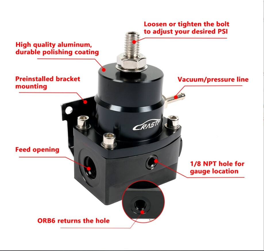 This EFI fuel pressure regulator is a powerhouse for high-performance builds! The CNC-machined aluminum feels solid, and it handles up to 1000 HP with ease. Love the included AN6 fittings and oil gauge—super clean install. Perfect for tight spaces without sacrificing performance. A must-have for serious street machines!