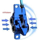 Model: E4 Color: black, red, silver, blue, green, purple Material: magnesium aluminum alloy Length: Front brake 800mm; Rear brake 1550mm Brake Pistons: 4 Pistons Brake Fluid Type: Mineral Brake Fluid Weight: about 230g for the front brake; about 245g for the rear brake; about 28g for the screw. Brake For: mountain bikes, DH,AM,folding bikes, electric bikes, etc. The brakes are the left front brake and the right rear brake Left hand controls the front brake, right hand controls the rear brake. Right rear brake suitable for internal wiring!!! 4 Piston brake Smooth and even braking Cooling brake pads The multi-metal copper-based ceramic heat sink improves the heat dissipation performance by 25%. ①Cylinder block ②M6 oil filling screw ③CNC anti-skid vent brake lever ④Built-in bearing ⑤ Travel adjustment screw ⑥22.2mm detachable clamp ring The rear brake adopts the cable routing inside the frame, and the brake lever/caliper has a split structure. German TUV safety certification, the measured braking force can reach 641N.