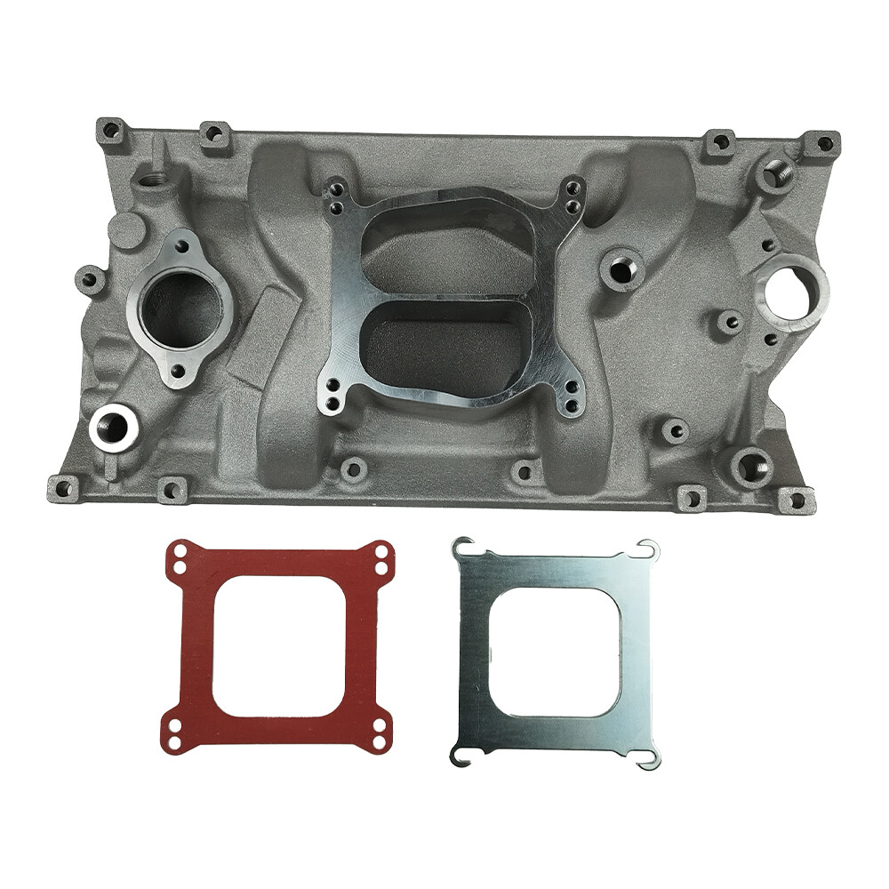 Intake Manifold Dual Plane for SBC Small Block Chevy 1996-02 Vortec 327 350 383 Description: Item is 100% New, Never used or installed. Engine:327 350 383 VortecMake: Chevrolet Intake Style: Dual plane RPM Range:Idle-5,500 EGR or Non-EGR: Non-EGR Material : Aluminum Finish:Satin Includes Gaskets: No Requires Aftermarket Fuel Rails: No includes Fuel Rails: No Fitment: For SBC Small Block Chevy 1996-2002 Intake Manifold Height :4.250 in. Intake manifold length: 21 in inIntake manifold width:10.2in Features: For use with Vortec style heads Can use either spread or square bore carbs, includes adapter plate and gasket for square bores Ideal port position - allows custom porting for maximum power Dual distributor hold-down provisions for extra protection against distributor rotation Four corner water outlets Accepts late-model water neck, air-conditioning, alternator, and HEI Pressure tested to insure leak free operation Compatibility: Compatible with 1996-2002 Small Block Chevrolet Vortec 350 engines. Compatible with Vortec style heads. Package including: 1 X SBC Intake Manifold As Shown in the Picture above Professional installation in highly recommended. No instruction included.