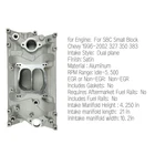 Description: Item is 100% New, Never used or installed. Engine:327 350 383 VortecMake: Chevrolet Intake Style: Dual plane RPM Range:Idle-5,500 EGR or Non-EGR: Non-EGR Material : Aluminum Finish:Satin Includes Gaskets: No Requires Aftermarket Fuel Rails: No includes Fuel Rails: No Fitment: For SBC Small Block Chevy 1996-2002 Intake Manifold Height :4.250 in. Intake manifold length: 21 in inIntake manifold width:10.2in Features: For use with Vortec style heads Can use either spread or square bore carbs, includes adapter plate and gasket for square bores Ideal port position - allows custom porting for maximum power Dual distributor hold-down provisions for extra protection against distributor rotation Four corner water outlets Accepts late-model water neck, air-conditioning, alternator, and HEI Pressure tested to insure leak free operation Compatibility: Compatible with 1996-2002 Small Block Chevrolet Vortec 350 engines. Compatible with Vortec style heads. Package including: 1 X SBC Intake Manifold As Shown in the Picture above Professional installation in highly recommended. No instruction included.
