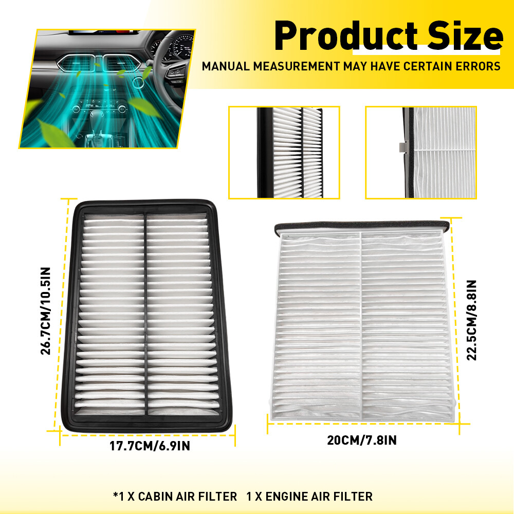 Car Engine&Cabin Air Filter Combo Kit Fits Mazda 3 6 CX-5 2013-2022 PE07-13-3A0A WHY YOU NEED CHANGE YOUR CAR'S AIR FILTER? DUST CLOGS FILTER: LOSS OF FILTRATION, POOR HVAC EFFECT PRODUCE ODOR: BREED BACTERIA,HARMFUL TO HEALTH Fit for: Mazda 3 2014-2018 L4 2.0L Mazda 3 2014-2018 L4 2.5L Mazda 6 2014-2020 L4 2.5L Naturally Aspirated Mazda CX-5 2013-2017 L4 2.0L Mexico Mazda CX-5 2014-2022 L4 2.5L Naturally Aspirated Specifications: OE Numbers: PE07-13-3A0A, KD45-61-J6X AF6280 C38175 Engine and Cabin Air Filter Kit for Mazda CX5 2013-2022 2.0L 2.5L Mazda 6 14-18 Car Engine&Cabin Air Filter Combo Kit Fits Mazda 3 6 CX-5 2013-2022 PE07-13-3A0A WHY YOU NEED CHANGE YOUR CAR'S AIR FILTER? DUST CLOGS FILTER: LOSS OF FILTRATION, POOR HVAC EFFECT PRODUCE ODOR: BREED BACTERIA,HARMFUL TO HEALTH Fit for: Mazda 3 2014-2018 L4 2.0L Mazda 3 2014-2018 L4 2.5L Mazda 6 2014-2020 L4 2.5L Naturally Aspirated Mazda CX-5 2013-2017 L4 2.0L Mexico Mazda CX-5 2014-2022 L4 2.5L Naturally Aspirated Specifications: OE Numbers: PE07-13-3A0A, KD45-61-J6X AF6280 C38175 Filters out >99% unpleasant smells and pollutants:Dirt/Dust Allergens Bacteria Brake Dust Soot Pollen PM2.5 Pet hair odors & fumes exhaust Features: *Filtering Impurities Effective filtration of impurities or gases ensures that the fluid or gas (e.g., fuel, oil, or air) entering the automobile engine or other important components is pure and free of impurities, making you and your passenger enjoy clean air. *Excellent Material The filter paper is made of materials capable of good adsorption, effectively filtering out impurities to ensure the operation of relevant components. *Easy Installation Simple installation with a direct replacement. Cutting or other complications are not required. *Proposals for Replacement To ensure that the engine and cabin air filter provide you with clean air, recommended replacement every 12 months, 12,000 miles or as specified by the vehicle manufacturer. *Warm Notice Please double-check the OE number and car models in the description to guarantee it fits your vehicle before ordering. Packaging Include: 1 x Cabin Air Filter 1 x Engine Air Filter INSTALLATION PROCEDURE: STEP1:Open the cover plate of cabin air filter STEP2:Take out the old cabin air filter STEP3:Replace with new air filter STEP4:Restore the cover plate Item Specifics Brand UNBRANDED Type Air Filter Placement on Vehicle Front Features Easy Installation Manufacturer Part Number LX-MAZDA3-14-18 OE/OEM Part Number PE07-13-3A0 PE07-13-3A0A PEAR-13-3A0 PE07133A0 PE07133A0A PEAR133A0 KD45-61-J6X KR11-61-J6X MP11-1K-D45 KD4561J6X KR1161J6X MP111KD45 Mounting Style Direct Replacement Performance Part No Country/Region of Manufacture China Material Paper Vintage Part No Universal Fitment No Manufacturer Warranty 6 Months Interchange Part Number PE07-13-3A0A PE07-13-3A0 KD45-61-J6X K015-V9-030 AF6280 VA6280 CA11259 CF11811 C27901 A26280 C38175 VA-302 VCA-1175 ADM52531 ADM52264 AF5211 CU24009 CAP26280 PEAR-13-3A0 SA11259 PA6280 PA-611 PZA611 AF1548 AF11259 A-478 A2488 J1323 Item Height 0.94 in Item Length 9.29 in Item Width 8.26 in Superseded Part Number PE07-13-3A0 PE07-13-3A0A PEAR-13-3A0 KD45-61-J6X KR11-61-J6X MP11-1K-D45 CA11259 A26280 49247 CF11811 C38175 24103 Warranty 1 Year Other Part Number CA11259,CF11811,A26280,C38175,AF6280,CU24009 Fitment Type Direct Replacement Product Type Combo Set Engine & Cabin Air Filter Package included 1×Replacement Combo Set Engine & Cabin Air Filter Applicable Regions North America Bundle Description Combo Set Engine & Cabin Air Filter Custom Bundle Yes Non-Domestic Product Yes FAQ ♥ If you have a decoding problem or any other problems, please contact us first, we will help you with it. We will reply you within 24 hours in working days. I'm a new seller, thanks a lot for your trust and convince! I will serve you with all my heart. ♥ Q1: Will this bulb fit my vehicle? A: We can match almost any vehicle to one of our bulb sizes. eBay only lets us include some vehicle fitments per listing, but if your vehicle does not show up on the compatibility table at the top of our listings, welcome you to contact us for free consulation before purchasing a product. Q2: My item has not arrived, what's taking so long? A: Sometimes items take longer than expected, especially if it’s going far or to rural area. Check with your post office to see if your item has been held up. Sometimes Royal Mail will not update a tracking number until it has arrived at its destination. If your item still don't arrive after a few days, let us know so we can double check for you and help solve it asap. Q3: My bulbs won't fit, help! A: Special bulb holder may be required. See if you can take the holder from the stock bulb. If not, let us know. The bulb size may be wrong, double check the item you received with the item you ordered. Do you have an aftermarket lighting housing? These may not be perfectly fitted for aftermarket bulbs and will require some manual modifications. Q4: Neither side lighting up? Both sides flicker, hyper flash, or work inconsistantly. A:Check the light fuses, and then check the ballast plugs to insure correct installation. If this doesn't work, there may be a voltage problem with the vehicle. You probably just need a relay or capacitor. Even though some bulbs are builtin resistors, they may still need a decoder. Pay & Ship (1). We gladly accepts payment via PayPal, We will ship your item(s) within 24 hours. (2). Before payment, please keep the consistency of Paypal address and ebay address. (3). Quantity orders are welcome! Returns (1). We offer 60 days free return policy. Please contact us within 60 days from the date you receive your order if you have any issues with the product or want return. Refund will be send after we got your resend package. (2). All returned items should be in the original packaging , return tracking information should be provided . Contact Us (1).Negative feedback will not help resolve any problems you have, p