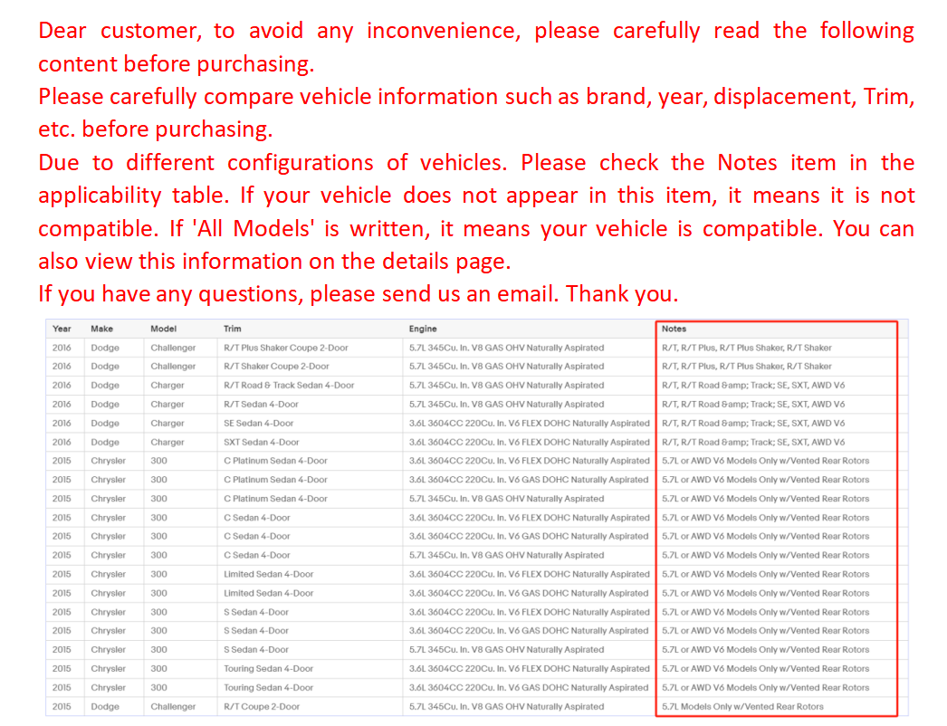 Product Description Front Ceramic Brake Pads Set for Nissan Murano Altima Maxima Infiniti FX35 FX45* Front Ceramic Brake Pads Set Kit Includes: (1) Set Front Ceramic Brake Pads w/Hardware - P-969 Brake Pad Specifications: Premium Ceramic ALL CLIPS AND HARDWARE INCLUDED 4-Piece Front Brake Pad Set FITS: MAKE MODEL YEAR RANGE SPECIFIC DETAILS INFINITI FX35 2003 - 2005 Built Before 11/2005 INFINITI FX45 2003 - 2005 Built Before 11/2005 NISSAN ALTIMA 2005 - 2006 SE-R NISSAN MAXIMA 2004 - 2008 All Models NISSAN MURANO 2003 - 2007 All Models NISSAN MURANO 2009 - 2010 All Models NISSAN MURANO 2011 - 2012 LE, S, SL, SV *Dear all Customers, We are happy to assist you to choose the right Brake pads/part for your vehicles. If you don't ask before to make sure if it's the correct one & cause any issue after you got the product, please try to contact us first, don't just go ahead & left us any negative feedback. Please understand that we have been trying to make the customers happy as much as possible so we can earn all 5 stars with 100% feedback rating. Please support us & be nice to the ebay sellers. Thank you for your understand! *Dear all Customers, Our goal is to ship the good quality Brake pads to you as fast as possible. Mostly we pack & ship the item to you on the date you buy or the next day. When we ship it out to the post office, then we cannot take any control over their service any more. Please understand. The estimate date of delivery is just the rough estimate by ebay not the logistics company. Please don't expect it to arrive exactly on that date, especially the the customers from the east coast, it will take longer than expected for some customers.If there's the mistake made by the US postal service, please understand that it's not our mistake. Any delay issue, please contact us nicely & we will try our best to help you any time. We try our best to keep the cost down for the customer can afford to get the product at the affordable price with the free shipping from us. Then we cannot use the super fast service (overnight expedite shipping service). So please be patience & contact us instead of getting mad & leave us the negative feedback. Our small business needs your support. Thank you for your kindly understand. God bless you all. Product Features About Us Shipping Returns Service Guaranteed Payment Contact Us 1. Unmatched braking power 2. Ceramic friction formulas specially designed for fleet vehicles 3. Ultimate upgrade for OE semi-metallic brake pads 4. Precision cut backing plate for perfect fit 5. Backing plate powder coated for durability 6. Definitive control of noise, vibration, and harshness 7. Extremely rotor-friendly for longer rotor life 8. Ultra-low dusting for cleaner wheels and tires 9. No curing, ready to be installed right out of the box Welcome to our HENZIKON eBay store, where safety and performance meet! We specialize in offering premium brake discs (rotors) and brake pads tailored to enhance the stopping power and extend the lifespan of your beloved vehicle. 🚗Why Choose Us? Quality Assured: Every brake disc and pad we sell undergoes rigorous quality control to ensure they meet or exceed OEM standards.Affordable Prices: Get top-notch brake parts without breaking the bank. We offer competitive pricing to keep you and your wallet happy.Quick Shipping: Expedited shipping options available to get your brakes back on track in no time. 💪Safety First: we understand that brakes are the first line of defense when it comes to road safety. That's why we only offer products that prioritize your and your passengers' well-being. 💌Customer Satisfaction: Your satisfaction is our top priority. If you have any questions or concerns, our friendly customer service team is always ready to assist you. FREE SHIPPING* ON ALL PURCHASES! Shipping Options Most orders placed with AutoShack qualify for free shipping within the Continental US. Standard Delivery (Included Free) Delivery is between 2-7 business days. The suggested delivery arrival dates on the site are an estimated arrival time and not guaranteed. If you receive your product and it is damaged, please contact our customer support. 1.30 Days Free Return and Money Back 2.If you are not satisfied with your purchase, you can return the item with original packaging back to us for full refund, not any re-stock fee. 3.If you receive any wrong items, or damage during the transportation or defect items, we will accept the return and pay the return freight. 4.If you have made a mistake on purchase and wish to cancel the order before it is dispatched please ★contact us by ebay massages or email as quickly as possible. 5. The returned products must be placed in a complete box, and we do not allow partial package returns. 6.The full refund or replacement will be available for all faulty items, including the original shipping cost. 7.Please kindly contact us before return, our representatives will send you the detailed return instruction. 8.The guarantee will be only for the cost of the item, we will not responsible for installation or other fees like labor expenses, towing expenses, additional repair expenses or other related expenses. 1. This item is backed by a 10 Year Warranty. In the event this item should fail due to manufacturing defects during intended use, we will replace the part free of charge (excludes shipping charges) for the original purchaser. 2. Our warranty covers the replacement of the part only and does not cover any associated costs in regards to labor or any other expenses incurred or associated with the purchase of the part. 3. This item is backed by a warranty against defects in materials and workmanship under its intended use. The warranty does not cover normal wear and tear. 4. The parts that we supply are intended for installation by qualified installers. Warranty will be void due to improper installation. We accept payment only via PayPal.In order to ensure a smooth transaction, please follow the payment