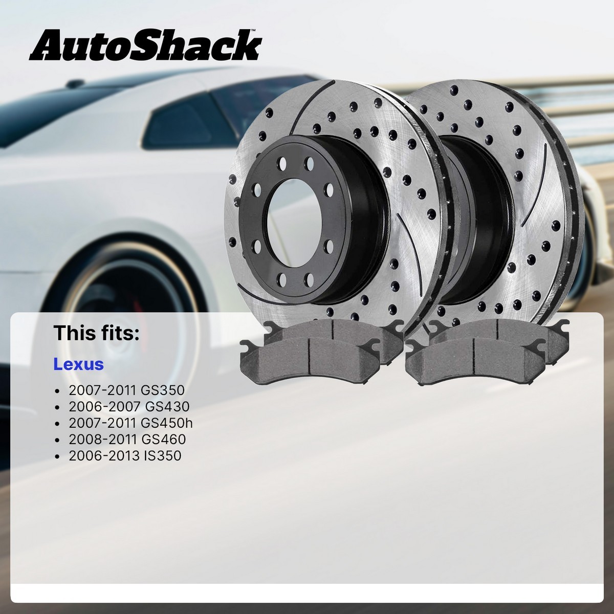 Front & Rear Drilled Disc Rotors Ceramic Brake Pads for Lexus IS350 GS350 Customer Service Returns Shipping Information Warranty At AutoShack, we offer exceptional and fast service to ensure you get the right parts as quick as possible. If you have any questions regarding out parts and services, please ask us a question. Business Hours Monday to Friday: 8:00 am - 7:00 pm ET Saturday: 9:00 am - 6:00 pm ET Sunday: Closed You may also send us an email through eBay at the top right corner of this page. "We are committed to provide you, our valued customer, with a 100% customer experience. We welcome you to contact our experienced customer service representatives with any questions you may have." Our Knowledgeable Customer Service Representatives Are Ready To Help. We will gladly accept the return of your purchased item(s) for a full refund as long as the return is made within 30 days of the invoice date and the item(s) have not been damaged or installed. Purchased bundles may only be returned as a complete bundle. Partial returns of bundles is not permitted. Please Note - AutoShack does not provide free return shipping. Return Shipping cost is only covered in the event of an AutoShack error. FREE SHIPPING* ON ALL PURCHASES! Shipping Options Most orders placed with AutoShack qualify for free shipping within the Continental US. Some order will have an additional shipping cost due to package size or being outside of standard delivery area. *Warranty Replacement items covered under AutoShack’s 6 month Warranty and Limited Lifetime warranty do not include shipping costs due to package size or being outside of standard delivery area. Standard Delivery (Included Free) Delivery is between 2-7 business days. The suggested delivery arrival dates on the site are an estimated arrival time and not guaranteed. All shipping carriers reserve the right to extend delivery time by 24 hours to residential deliveries. This is beyond our control and shipping charges will not be refunded for this reason. Upon receiving your order, inspect all packages thoroughly for missing, damaged, or incorrect parts. Our auto parts warehouse puts forth every effort to prevent shipping damage, however, it does occur occasionally. If you receive your product and it is damaged, please contact our customer support as soon as possible as AutoShack will only accept your claim for up to 4 days from the date of delivery. Please document any damage, as we will require photos. Damaged products will not be accepted for refund unless AutoShack customer service has been contacted and the proper documentation has been provided. You can contact us by telephone, by our option to send an email or by chat. Two Day Express Shipping 2 Business Day Express shipping is now available. Orders placed before 12 pm EST will ship on the same business day. Warranty replacements Items do not ship with Express Shipping. If the customer would like to Have the Limited Lifetime Warranty Replacement Shipped Express, they can pay a nominal fee to get Express Shipping. Due to Express Shipping involving Air Travel some items cannot be shipped express at this time. Currently, these items are AutoShack Strut and Shocks. Note: Because we are a retailer and not a wholesaler, there is a maximum purchase limit of $775 per shipping address per 24-hours. Canadian customers can find our listings on eBay.CA Standard AutoShack Warranty IMPORTANT: By using your AutoShack product, you are agreeing to be bound by the terms of the AutoShack Warranty as set out below. Do not use your product until you have read the terms of the warranty agreement. If you do not agree to the terms of the warranty agreement, do not use the product and return it within the return period stated by eBay. AutoShack hereby warrants, to the original purchaser, that all auto parts & accessories contained in the original packaging against any defects in material and workmanship. All parts sold by AutoShack are brand new, serviceable, and functional. If an auto part is found to be defective within six months* from the original date of purchase AutoShack shall, at its discretion, provide a one-time replacement part. AutoShack is not responsible for, and the warranty does not cover, any damages arising from a failure to operate the product within its intended uses. This warranty does not cover products purchased from sources other than AutoShack. No reimbursements will be given for the delay, labor, mileage, or any other costs involved in the installation or re-installation of the auto parts in question. Warranty does not cover parts installed for an incorrect application. Warranty and shipping damage-related claims may require authentication including, but not limited to Mechanic Diagnosis, Pictures or Video of damaged goods – do not dispose of parts until instructed. Failure to provide authenticating documentation could result in denial of the current warranty claim and forfeit of future warranty. Please note that Struts and Complete Struts must be purchased in pairs (front or rear) or warranty is NULL & VOID. All warranty claims require an image of the warrantied part not attached to the vehicle, and an image showing the part stamp, if visible, on the warrantied part. You may be required to return the part for inspection. Once the warranty claim has been reviewed and approved AutoShack will, at their discretion, provide you with a one-time replacement part. We Stand Behind Our Parts With Coverage You Can Count On. OVER 40 YEARS OF SERVICE EXCELLENCE Front and Rear Drilled Slotted Brake Rotors Black and Ceramic Pads Kit Front & Rear Drilled Disc Rotors Ceramic Brake Pads for Lexus IS350 GS350 Qty. Part Description 1 PR41452L Performance Brake Rotor 1 SCD1113 Ceramic Brake Pads 1 SCD1118 Ceramic Brake Pads 1 PR41451R Performance Brake Rotor 1 PR41448LR Compatibility Chart ▲ Make Model Year Notes Position Lexus GS350 2007 - 2008 Rear Wheel Drive | Front 13.15 Inch Rotor Diameter | Rear 12.21 Inch Rotor D