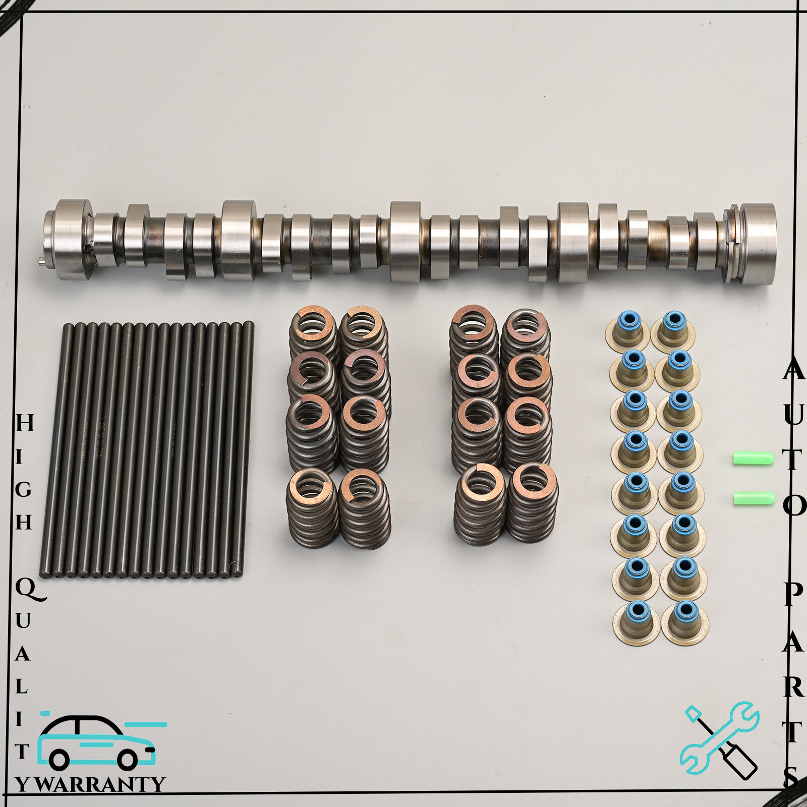 Stage 4 LS Truck Cam Kit w/ Pushrods Camshaft Kit Includes: -LS6 Beehive (.560" lift) valve spring kit (Part Number: SP011-16) or GM LS6 valve spring kit -LS Hat Valve Seals -Stage IV Camshaft Specs (BTR32430090): 224/230 .553"/.553" 109 -LS Chromoly 7.400" Long 5/16" Diameter Pushrods These camshafts have a 3-bolt timing gear pattern. Cam Kits are an excellent selection for GM trucks and SUVs equipped with 4.8L, 5.3L, 6.0L, or 6.2L engines. These camshafts are designed to increase power without sacrificing low-end torque and are great choice for heavier vehicles such as Silverado, Sierra, Yukon, Tahoe, Suburban, Escalade, etc. The stage IV cam has a very noticeable sound at idle. Recommended for use with a 3000-3200 RPM stall converter. 7.400" pushrods come standard Stage 4 Camshaft fits the following vehicle(s): 1999 Cadillac Escalade 2000 Cadillac Escalade 2005 Cadillac Escalade 2008 Cadillac Escalade 2009 Cadillac Escalade 2010 Cadillac Escalade 2011 Cadillac Escalade 2012 Cadillac Escalade 2013 Cadillac Escalade 2014 Cadillac Escalade 2006 Chevrolet Impala 2007 Chevrolet Impala 2008 Chevrolet Impala 2009 Chevrolet Impala 1999 Chevrolet Silverado 1500 2000 Chevrolet Silverado 1500 2001 Chevrolet Silverado 1500 2002 Chevrolet Silverado 1500 2003 Chevrolet Silverado 1500 2004 Chevrolet Silverado 1500 2005 Chevrolet Silverado 1500 2006 Chevrolet Silverado 1500 2007 Chevrolet Silverado 1500 2008 Chevrolet Silverado 1500 2009 Chevrolet Silverado 1500 2010 Chevrolet Silverado 1500 2011 Chevrolet Silverado 1500 2012 Chevrolet Silverado 1500 2013 Chevrolet Silverado 1500 1999 Chevrolet Suburban 2000 Chevrolet Suburban 2001 Chevrolet Suburban 2002 Chevrolet Suburban 2003 Chevrolet Suburban 2004 Chevrolet Suburban 2005 Chevrolet Suburban 2006 Chevrolet Suburban 2007 Chevrolet Suburban 2008 Chevrolet Suburban 2009 Chevrolet Suburban 2010 Chevrolet Suburban 2011 Chevrolet Suburban 2012 Chevrolet Suburban 2013 Chevrolet Suburban 2014 Chevrolet Suburban 1999 Chevrolet Tahoe 2000 Chevrolet Tahoe 2001 Chevrolet Tahoe 2002 Chevrolet Tahoe 2003 Chevrolet Tahoe 2004 Chevrolet Tahoe 2005 Chevrolet Tahoe 2006 Chevrolet Tahoe 2007 Chevrolet Tahoe 2008 Chevrolet Tahoe 2009 Chevrolet Tahoe 2010 Chevrolet Tahoe 2011 Chevrolet Tahoe 2012 Chevrolet Tahoe 2013 Chevrolet Tahoe 2014 Chevrolet Tahoe 1999 GMC Sierra 1500 2000 GMC Sierra 1500 2001 GMC Sierra 1500 2002 GMC Sierra 1500 2003 GMC Sierra 1500 2004 GMC Sierra 1500 2005 GMC Sierra 1500 2006 GMC Sierra 1500 2007 GMC Sierra 1500 2008 GMC Sierra 1500 2009 GMC Sierra 1500 2010 GMC Sierra 1500 2011 GMC Sierra 1500 2012 GMC Sierra 1500 2013 GMC Sierra 1500 1999 GMC Yukon 2000 GMC Yukon 2001 GMC Yukon 2002 GMC Yukon 2003 GMC Yukon 2004 GMC Yukon 2005 GMC Yukon 2006 GMC Yukon 2007 GMC Yukon 2008 GMC Yukon 2009 GMC Yukon 2010 GMC Yukon 2011 GMC Yukon 2012 GMC Yukon 2013 GMC Yukon 2014 GMC Yukon Please email us without any hestision,we try to answer all emails within 24 hours.and we will try our best to let u satisfy.