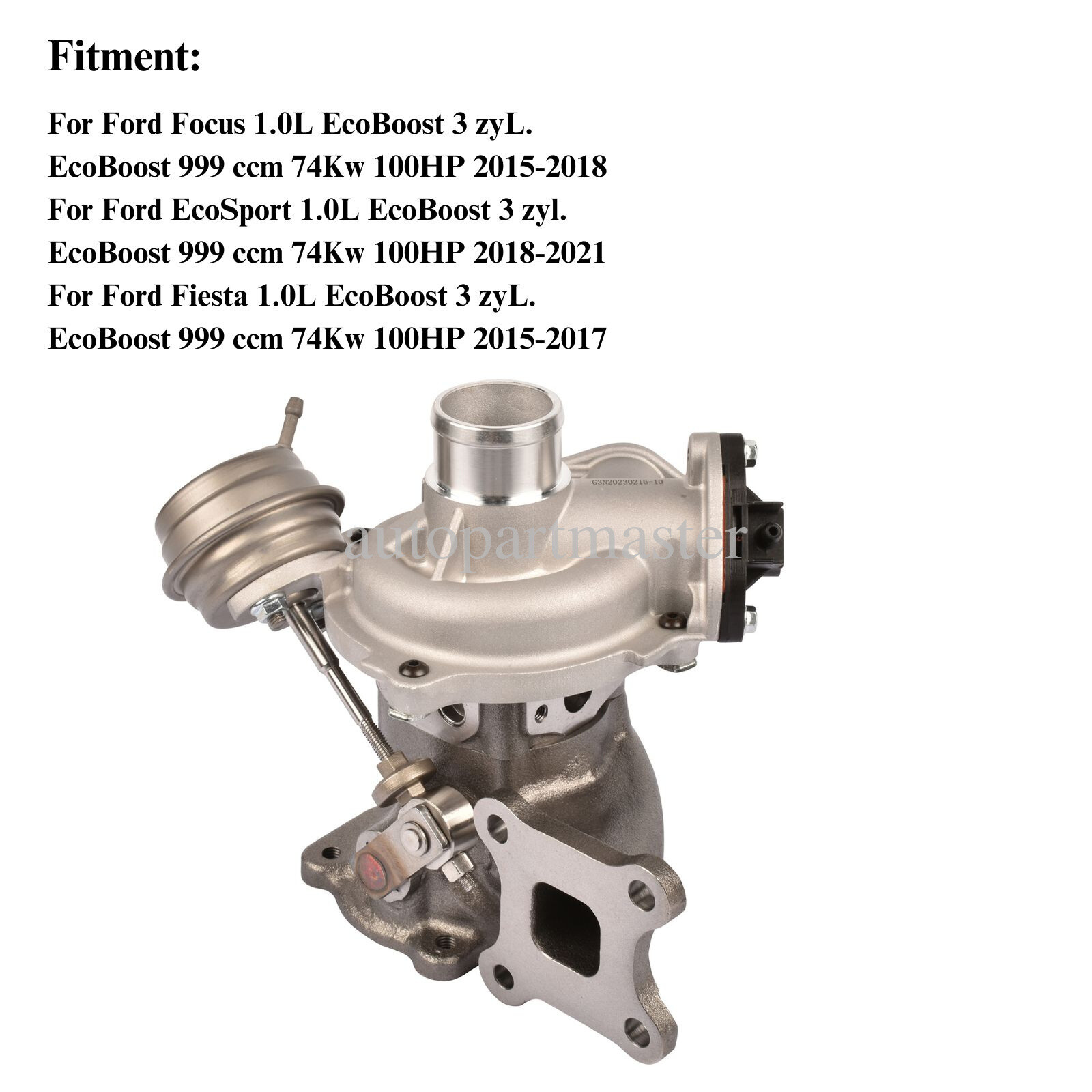 OE N umber 1761178, 1761181, 1799836, 1799852, 1808411, 1808411, 1808366, 2082254, 2008150, CM5G6K682GB, CM5G6K682GC, CM5G6K682GD, CM5G6K682GE, CM5G6K682JB, CM5G6K682HB, CM5G6K682HE, CM5G6K682HE, RMCM5G6K682GD, CM5G-6K682-GB, CM5G-6K682-GC, CM5G-6K682-GD, CM5G-6K682-GE, CM5G-6K682-JB, CM5G-6K682-HB, CM5G-6K682-HE, RMCM5G-6K682-GD Will fit Following Models Ford B-MAX 1.0 EcoBoost From 2011 Ford C-MAX 1.0 EcoBoost From 2011 Ford Kuga 1.0 EcoBoost From 2011 Ford Fiesta 1.0 EcoBoost From 2011 Ford Focus 1.0 EcoBoost From 2011 Ford GRAND C-MAX 1.0 EcoBoost From 2011 Ford Tourneo Connect 1.0 EcoBoost From 2011 Ford Transit Connect 1.0 EcoBoost 2013 - 2017 998 ccm, 1.0 EcoBoost 125 BHP, 92 kW M1DA/ M1JA/ M1JE On Mar 4, 2025 at 19:55:48 PST, seller added the following information: