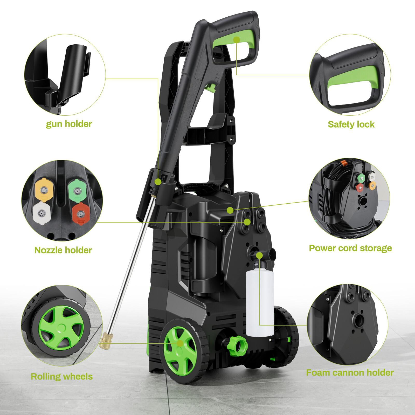 $ 10.4Powerful Electric Pressure Washer with Telescopic Handle and 4 Nozzles
