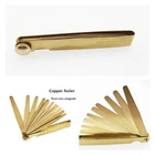 Use the feeler tokeep your hands clean and dry and do not wear gloves. Wipe the dust andgrease on the feeler to avoid affecting the measurement accuracy. The feeler shouldnot be forced into the measuring gap during measurement, so as to prevent thefeeler from bending or breaking. The feeler ruler isrelatively thin and sharp to prevent scratches on the hand or other body parts. Can not be used tomeasure the higher temperature of the workpiece. After use, thefeeler should be wiped clean and coated with a thin layer of industriallubricating oil, and then the feeler should be folded back into the clampingframe to prevent corrosion, bending, deformation and damage. For the measurementand adjustment of the gap, the feeler ruler conforming to the gap requirementsshould be firstly selected to insert into the measured gap, and then the feelerruler should be pulled while adjusting until the locking nut is tightened whenslight resistance is felt. At this time, the value marked by the feeler ruleris the measured gap value. When storing, do not put the feeler under Material: Brass, anti-electromagnetic rust. Iron box packaging, easy to access. Various Applications:Use on anything from guitars to engines and everything in between; Metric and SAE standard sizes are included (millimeters ) Measure Gaps:Use this Feeler Gauge when you need to quickly and easily measure gap widths。Machinery Industry, High-tech Equipment, Measuring gaps, Compressor manufacturers, Testing machine tool special fastening surfaces and fastening surfaces, Piston ring grooves and piston rings, Cylinders and pistons, Crosshead slides and guides, intake and exhaust valve tops and The size of the gap between the two mutually opposing faces, Such as the rocker arm and the gear meshing gap. Modeland Accuracy: 0.05mm-1mm Size: 100mm*13mm Blade length :100mm Number of leaves: 13 (sheets) Product specifications:The large image on the left shows detailed two feeler gauge measurements
