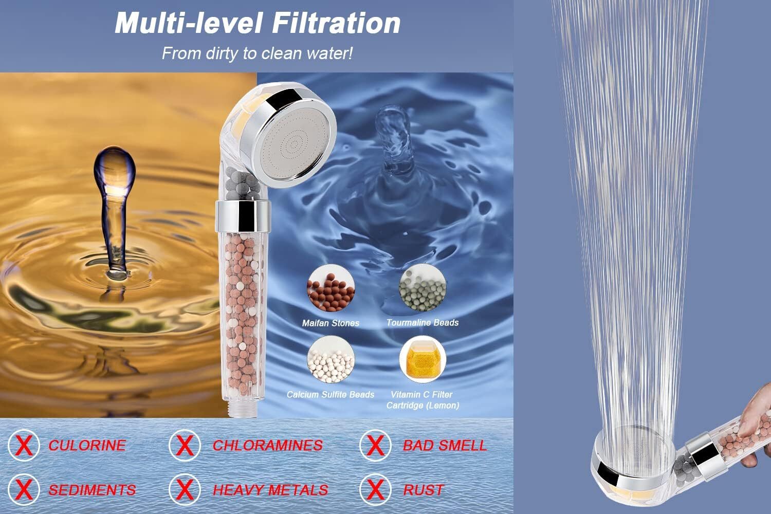 Product Description Filter Shower Head, High Pressure Showerhead With Filter Combo For Hard Water, Remove Chlorine Fluoride And Harmful Substances- 1 Replaceable Filter Cartridge(8 Inch, Chrome) Skin Care Shower Head Combo: Made From High Quality Stainless Steel And Food Grade Abs Production. Filter Shower Head Combo Provides Maximum Water Filtration To Make Skin Softer And Hair Shinier. High Pressure Shower Head: 8 Inches Shower Head Is Made Of Superior 304 Stainless Steel, Which Is Rustproof. Manufactured By Laser Welding Technology And Slim Design, Rainfall Shower Head With Self-Cleaning Nozzles Can Prodive You Luxury And Powerful Shower Experience Even At Low Water Flow. Vitemin C Handheld Shower Head: The Shower Head Comes With 3 Types Of Mineral Beads, Each With Different Water Treatment And Filtration Benefits, Which Gives You A Clean Water Source. The Soothing Lemon Smell Invigorates The Senses, Relaxes Your Body, Improves Your Mood, And Boosts Sleep Quality. 15-Stage Shower Filter: Our Shower Filter Can Help To Reduce Chlorine, Fluoride, Heavy Metal And Bad Odors. Improve The Condition Of Skin, Hair And Nails. Effectively Filters Impurities In The Water, Allowing You And Your Family To Take A Shower In Clean Water. Enjoy Rain Shower: The High Pressure Shower Head And Clean Water Giving A Relax And Comfortable Shower Experience For Your Family, To Get A Pleasant Mood Every Day! About Us We are a reputable seller with many years of experience selling on eBay. Our goal is to provide high-quality products and excellent customer service. Shipping Items will be shipped within 1-3 business days when we received payment. (Orders are not processed on weekends & holidays) Tracking information will be sent once item is shipped. Delivery time depends on destination and other factors Item is shipped to ebay address. Leaving correct address can minimize delay. For international shipping and shipping to Guam, Hawaii and Alaska, Please contact us before placing the order. International buyers please note: Import duties, taxes and charges are not included in the item price or shipping charges. These charges are buyer’s responsibility. We will try our best to reduce the risk of the custom duties. Local pick-up is unavailable at the moment. Contact Us We reply any email messages within 1 business / working days(off-duty at weekend). If you do not get a response from us, then please check your junk or spam mailbox. Our Business hours: Mon-Fri 9:00-18:00, UTC/GMT +8 hours. Please contact us either by clicking "contact seller" in the "purchase history" section or simply click "ask a question" at the bottom of this page. If you are unsatisfied with our item or service, please contact us before leaving any feedback. We are committed to resolve all issues in a friendly and satisfactory manner.