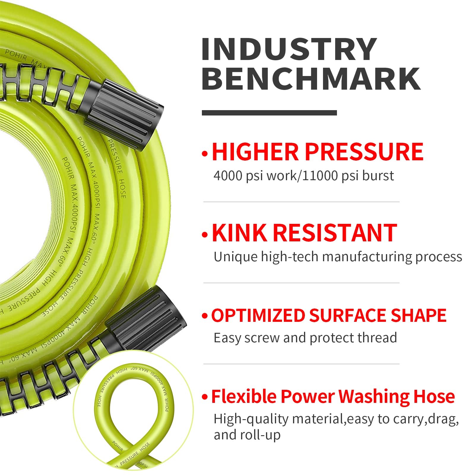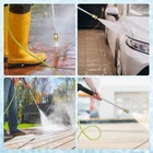 Pressure Washer Gun and Hose 3600 PSI, Pressure Washer Gun and 50ft Hose Kit, 3/8" Quick Connect Swivel, M22 15mm/14mm Fittings, 30" Extension Wand & 7 Nozzle Tips - Ideal for Home & Outdoor Cleaning Pressure washer gun and hose with M22-14 and M22-15 fittings for direct connection to 14mm or 15mm inner diameter pressure hose fittings,3600 PSI Max pressure, 8GPM Max Flow. Max temperature of water is rated to 60℃ / 140 F. M22 14mm fitting is compatible with Simpson, CraftsmanBriggs Stratton,Karcher, Ryobi pressure washer. M22 15mm fitting is compatible with Sun Joe, Campbell, MI-T-M, AR Blue, Stanley, Cleanforce, Simoniz power washer. Pressure washer gun wand extension with 1/4''standard quick connector, can be used with any accessory with a 1/4'' plug. Such as nozzles tips, foam cannon, water broom, pivoting coupler, undercarriage cleaner, surface cleaner. Comfortable handle design for easy handling. 16 inch pressure washer extension wand can change the length of the pressure washer short gun, make it a total length of 30 inches,Replacement short pressure washer gun fits gas and electric pressure washer with M22 fitting. Package include: 1pc pressure washer gun, 1pc pressure washer hose 50ft,1pc extension wand,1pc M22 14mm conver fitting, 1pc M22 15mm conver fitting,1pc 3/8" quick connect fitting, 1pc pressure washer nozzle holder, 2x 3/8 '' quick connect adaptors, 7pcs pressure washer nozzles with different spray angle,Choose different nozzle according to your needs.