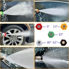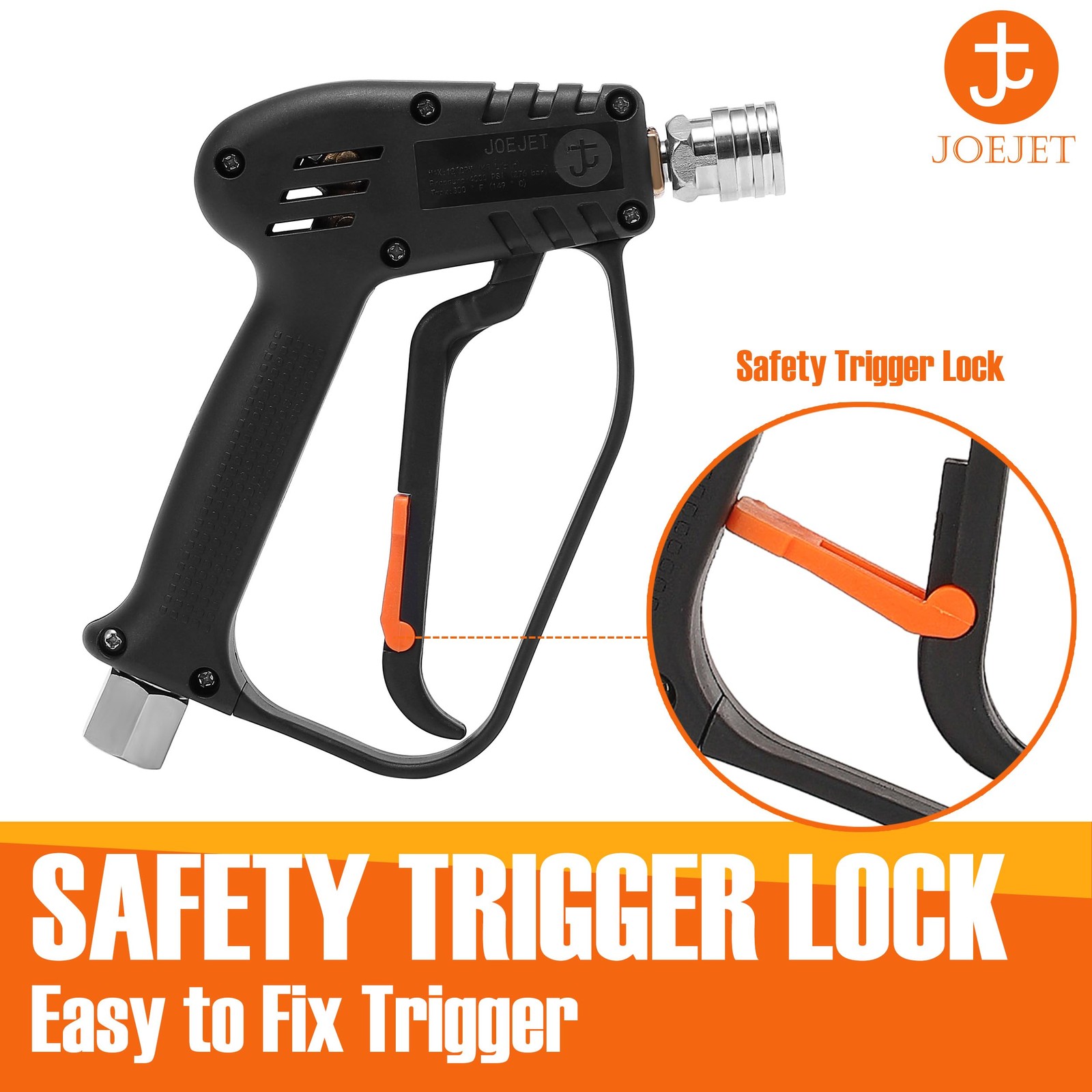 【360° Swivel】The tail of the pressure washer gun swivel adopts a unique design of 360° free rotation, so it can swivel flexibly, which effectively avoids the problem of hose tangles and makes your cleaning work easier. 【Wide Applicability】Pressure washer handle gun comes with 3 fitting adapter: 3/8" quick connector, M22-14mm fitting and M22-15mm fitting, is compatible for most pressure washer hose. Electric pressure washer gun with 1/4" quick connector can be connected tomost nozzles, power washer extension wand, foam cannon and so on. 【Convenient Design】The short power wash gun is designed with a locking handle, which can be easily pulled to fix the trigger. This will make your work smoother and easier. Besides, the small body design makes the pressure washing gun easy to operate and use. 【Superior Material】The internal structure of the high pressure washer spray gun is made of stainless steel with high quality, better hardness and high wear resistance. Car wash gun pressure washer can withstand up to 300°F operating temperature. Max Pressure is up to 4000 PSI. 【Nozzle with Holder】Pressure washer sprayer nozzle tips have different angles. According to your need, you can choose suitable pattern. Extra pressure washer nozzle holder can prevent nozzle from losing, easy to carry. 【360° Swivel】The tail of the pressure washer gun swivel adopts a unique design of 360° free rotation, so it can swivel flexibly, which effectively avoids the problem of hose tangles and makes your cleaning work easier. 【Wide Applicability】Pressure washer handle gun comes with 3 fitting adapter: 3/8" quick connector, M22-14mm fitting and M22-15mm fitting, is compatible for most pressure washer hose. Electric pressure washer gun with 1/4" quick connector can be connected tomost nozzles, power washer extension wand, foam cannon and so on. 【Convenient Design】The short power wash gun is designed with a locking handle, which can be easily pulled to fix the trigger. This will make your work smoother and easier. Besides, the small body design makes the pressure washing gun easy to operate and use. 【Superior Material】The internal structure of the high pressure washer spray gun is made of stainless steel with high quality, better hardness and high wear resistance. Car wash gun pressure washer can withstand up to 300°F operating temperature. Max Pressure is up to 4000 PSI. 【Nozzle with Holder】Pressure washer sprayer nozzle tips have different angles. According to your need, you can choose suitable pattern. Extra pressure washer nozzle holder can prevent nozzle from losing, easy to carry.