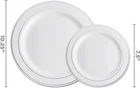 High-Quality 350 Piece Disposable Dinnerware - Silver Plates, Cups & Silverware ‹ › ‹ › ‹ › ‹ › ‹ › ‹ › ‹ › ‹ › ‹ › High-Quality 350 Piece Disposable Dinnerware Elevate your gatherings with this exquisite set of disposable dinnerware, featuring elegant silver plates, cups, and silverware, designed to impress and indulge your guests. Perfect for everything from weddings to casual picnics, this collection is the epitome of sophistication and convenience. What’s Included: 50 Premium Heavy Duty 10.25" Dinner Plates 50 7.5" Salad, Dessert & Appetizer Plates 50 Count 10 Oz Clear Fancy Disposable Silver Rimmed Plastic Party Cups 50 Soft and Absorbent Disposable Linen-Feel Paper Hand Towels Disposable Plastic Silverware Set: 50 Plastic Forks, 50 Plastic Spoons, 50 Plastic Knives Features: Premium quality disposable dinnerware, ensuring both elegance and convenience. Made from durable 100% food grade BPA free, non-toxic heavy duty plastic. Bulk pack of 350 pieces seamlessly accommodates up to 50 guests. Sophisticated silver rim design adds a touch of elegance to any occasion. Benefits: Time-saving: No need for clean-up; simply toss the dinnerware when you’re done. Perfect for a wide array of events: Ideal for weddings, receptions, birthdays, holidays, picnics, catered events, and more. Soft linen-feel hand towels add a touch of luxury and comfort. The combination of quality and elegance ensures that your events will impress your guests. Why Choose Our 350 Piece Disposable Dinnerware Set? If you’re looking for a way to elevate your dining experience without the hassle of traditional clean-up, this high-quality disposable dinnerware set is your answer. Offer your guests an exquisite dining experience that is both practical and stylish. Each piece is crafted for durability, ensuring your special occasions are as memorable as they are effortless. Don’t compromise on elegance—choose our 350 Piece Disposable Dinnerware Set for your next event and make every occasion extraordinary! Shipping Free & Fast Shipping - We offer free shipping to most of the USA with a normal delivery time of 3-7 days. However, due to the current situation, additional delivery time (up to 3 weeks) may be required for some items. Alternative Carriers - We may use alternative carriers (e.g. USPS, FedEx, UPS, etc.) to ensure your package arrives safely and on time. Due to the use of multiple carriers, we are unable to provide a tracking number automatically. Handling Time - Orders are processed and shipped within 1-2 business days of receiving cleared payment. Shipping Restrictions - Shipping to Alaska, Hawaii, Puerto Rico, Guam, and other US territories may incur shipping charges or delivery restrictions. Please contact us before ordering, or your order can be refunded/cancelled. State Restrictions - There may be restrictions based on your state of purchase. For example, certain items may not be shipped to California due to state regulations. Contact for Tracking Updates - If you require tracking updates or have any concerns about the delivery of your order, please feel free to contact us, and we will be happy to assist you. Return 30-Day Hassle-Free Returns - We want you to be completely satisfied with your purchase. If you are not, you can return the item within 30 days of receiving it for a full refund or exchange. Easy Return Process - To start a return, simply contact us and we will provide you with a prepaid return shipping label and detailed instructions. Restocking Fee - There are no restocking fees for returns. However, the buyer is responsible for return shipping costs if the return is not due to a seller's error. Refund Processing Time - Refunds will be processed within 5 business days of receiving the returned item in its original condition. Payment We accept all major credit cards, PayPal, and Apple Pay for your convenience. Your payment information is secure and encrypted to ensure a safe and seamless transaction. Please complete your payment within 3 days of purchase to avoid any delays in shipping. Feedback Your feedback is extremely important to us. We strive to provide the best products and customer service possible. If you are satisfied with your purchase, please take a moment to leave us a positive review. If you have any concerns or issues with your order, please contact us before leaving negative feedback. We are committed to resolving any problems and ensuring your satisfaction. Contact Us If you have any questions or concerns, please feel free to reach out to our customer support team. You can contact us through the eBay messaging system. We are available Monday to Friday, 9:00 am to 5:00 pm EST, and we will do our best to respond to your inquiry within 24 hours. Buy it now and enjoy a pleasant shopping experience! UPC: 739992999008 Unit Quantity: 350 Material: Plastic Theme: Not Set Occasion: All Occasions,Weddings,Receptions,Birthday Parties,Holidays,Picnics,Catered Events Set Includes: Complete,Dinner Plates,Salad Plates,Plastic Cups,Napkins,Plastic Spoons,Plastic Forks,Plastic Knives Features: Not Dishwasher Safe,Not Microwaveable,Hand Wash Only Character: Not Set Department: Kids,Adults,Unisex Brand: Unbranded Type: Dinnerware Set Color: Silver Number of Place Settings: 50 Number of Compartments: Not Set Shape: Round Pattern: Solid Style: Not Set MPN: Not Set Country/Region of Manufacture: Not Set Character Family: Not Set Year Manufactured: Not Set Finish: Glossy Number of Items in Set: 350-Piece Plate Diameter: 10.25 in Manufacturer Warranty: Not Set Model: Not Set Unit Type: Not Set Original/Reproduction: Not Set