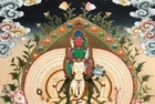 Namaste and Welcome to my Gallery!!! All of the paintings and arts in my gallery are originally handmade and hand-painted by my family members and other local artists who have been practicing their craft for over two decades. My father is Master Artists Nepal with an experience of more than four decades; you can see some of his work in this Gallery. Also you can see some of the beautiful and soulful artwork of talented local artists from Himalayas. ~~Avalokiteshvara Thangka Art~~ Silk brocading is a process of framing a Thangka in traditional Tibetan style. The frame is made of beautiful silk fabric having rich colors and patterns. The silk fabric protects the edges of the Thangka, and also makes it easier to hang. A thin silk cover protects the painting when rolled, and may be gathered up to display the painting when hung on the wall. It is generally thought that silk brocade renders a Thangka more attractive and more religious. Avalokiteshvara Thangka painting represents the Bodhisattva of Compassion. In total, he has one thousand hands and is in white color. His upper hands hold prayer beads and a lotus; the lower ones, poised in a hand gesture of prayer, clasp the wish-fulfilling jewel at his heart. Avalokiteshvara is said to embody love, kindness, and compassion for all beings. It is believed that Avalokiteshvara as vowing to never rest until he had freed all sentient beings from samsara. [Size = 133cm x 97cm] Material Used: • Cotton Canvas • Natural Pigments and colors • 24K Gold leaf ~Excellent for meditation or home/office decor, ~Tibetan Yoga Wall Art ~Genuine 100% hand-painted from Himalayas Please feel free to contact me if you have any question regarding the painting.