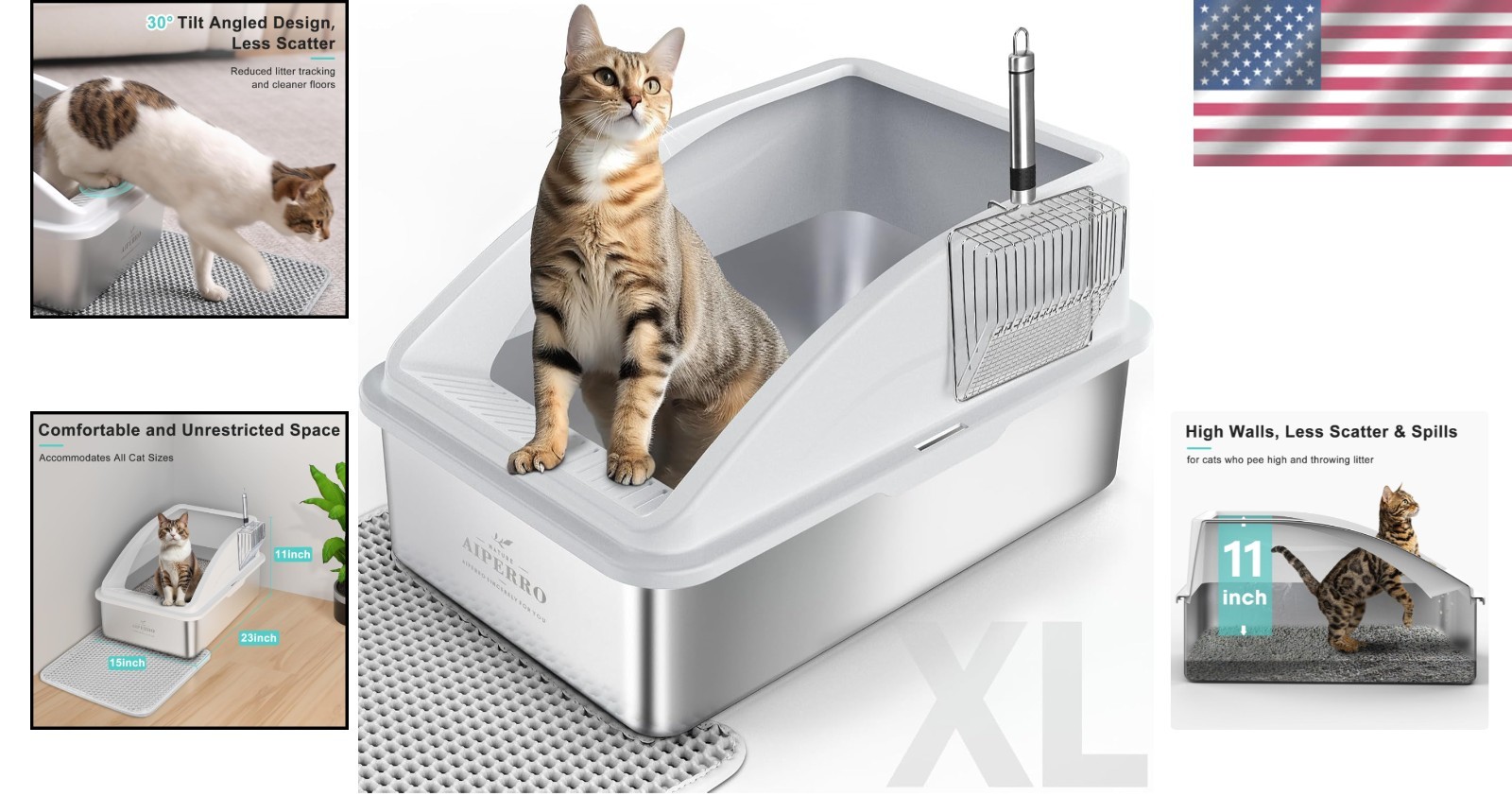 High-Sided XL Stainless Steel Cat Litter Box with Leak-Proof Design & Scoop ‹ › ‹ › ‹ › ‹ › ‹ › ‹ › ‹ › ‹ › ‹ › High-Sided XL Stainless Steel Cat Litter Box with Leak-Proof Design & Scoop Enclosed Design Designed with your furry friends in mind, this cat litter box features a top cover that not only prevents litter scatter but also offers a private sanctuary for your cats. Crafted from high-quality stainless steel, it promises durability, rust-resistance, and effortless cleaning. Its sturdy construction is built to support your beloved pets for to come. Exclusive Design Patent Experience innovative cleanliness with our patented 30° angled litter filter plate. This thoughtful design keeps litter contained within the box, significantly reducing the mess and minimizing cleanup time. Spacious XL Size Measuring a generous 23 x 15 x 11 inches, this extra-large stainless steel cat litter box accommodates cats of all sizes, including large and giant breeds. The high sides prevent spilling, ensuring your home remains tidy while making maintenance hassle-free. Anti-Urine Leakage Your peace of mind is paramount. Our leak-proof design features a sealed bottom and a curved shape which ensures superior sealing. Liquid waste stays contained, keeping your home clean and odor-free. Perfect Combination Included with your stainless steel litter box is a soft cat litter mat that provides a comfortable surface for your feline friend. In addition, an all-metal litter scoop comes with the set, enabling you to keep the box spotless with ease. Annex 1: Cat Litter Mat Honeycomb design with double layer and large holes effectively traps litter. Detachable design for easy cleaning and quick drying. Prevents litter from scattering across your home. Annex 2: Cat Litter Scoop Stainless steel construction with 0.4"-0.2" gaps for fast sifting. Durable and heavy-duty for extensive use. Comes equipped with hooks for easy storage on the litter box itself. Why Choose Our Stainless Steel Cat Litter Box? Elevate your cat's hygiene with a litter box that combines practicality with upscale design. The perfectly engineered leak-proof enclosure, extra-large size, and innovative litter-catching features make this litter box a must-have for any cat owner who values cleanliness and comfort. Order now and give your furry friend the privacy they deserve while maintaining an impeccably tidy space in your home! Shipping Free & Fast Shipping - We offer free shipping to most of the USA with a normal delivery time of 3-7 days. However, due to the current situation, additional delivery time (up to 3 weeks) may be required for some items. Alternative Carriers - We may use alternative carriers (e.g. USPS, FedEx, UPS, etc.) to ensure your package arrives safely and on time. Due to the use of multiple carriers, we are unable to provide a tracking number automatically. Handling Time - Orders are processed and shipped within 1-2 business days of receiving cleared payment. Shipping Restrictions - Shipping to Alaska, Hawaii, Puerto Rico, Guam, and other US territories may incur shipping charges or delivery restrictions. Please contact us before ordering, or your order can be refunded/cancelled. State Restrictions - There may be restrictions based on your state of purchase. For example, certain items may not be shipped to California due to state regulations. Contact for Tracking Updates - If you require tracking updates or have any concerns about the delivery of your order, please feel free to contact us, and we will be happy to assist you. Return 30-Day Hassle-Free Returns - We want you to be completely satisfied with your purchase. If you are not, you can return the item within 30 days of receiving it for a full refund or exchange. Easy Return Process - To start a return, simply contact us and we will provide you with a prepaid return shipping label and detailed instructions. Restocking Fee - There are no restocking fees for returns. However, the buyer is responsible for return shipping costs if the return is not due to a seller's error. Refund Processing Time - Refunds will be processed within 5 business days of receiving the returned item in its condition. Payment We accept all major credit cards, PayPal, and Apple Pay for your convenience. Your payment information is secure and encrypted to ensure a safe and seamless transaction. Please complete your payment within 3 days of purchase to avoid any delays in shipping. Feedback Your feedback is extremely important to us. We strive to provide the best products and customer service possible. If you are satisfied with your purchase, please take a moment to leave us a positive review. If you have any concerns or issues with your order, please contact us before leaving negative feedback. We are committed to resolving any problems and ensuring your satisfaction. Contact Us If you have any questions or concerns, please feel free to out to our customer support team. You can contact us through the eBay messaging system. We are available Monday to Friday, 9:00 am to 5:00 pm EST, and we will do our best to respond to your inquiry within 24 hours. Buy it now and enjoy a pleasant shopping experience! Unit Quantity: 1 Type: Hooded Litter Box