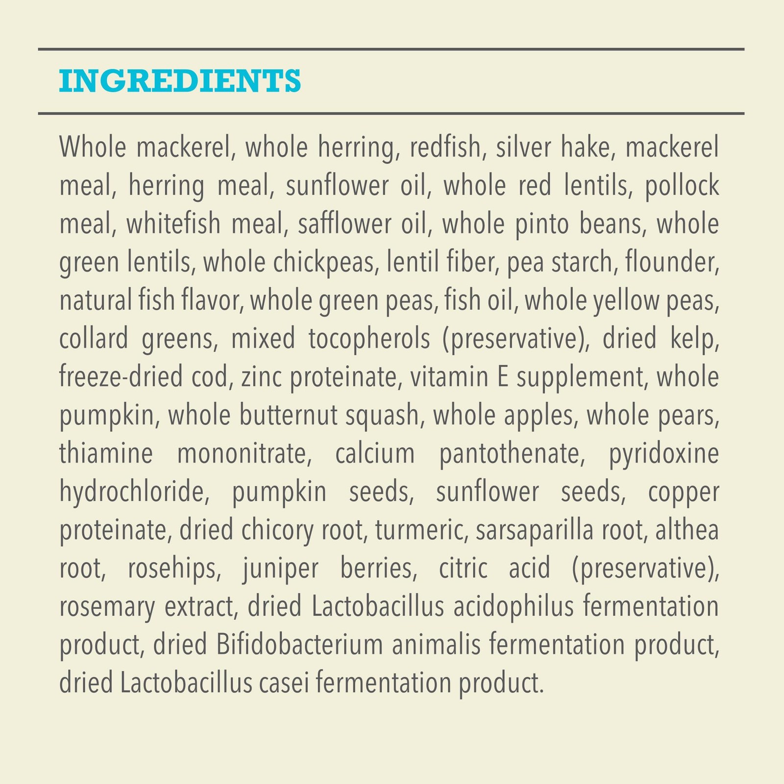 One (1) 4.5 lb bag of Grain Free* Wild Atlantic Recipe Dry Dog Food High protein dog food recipe features 70 percent** animal ingredients and 30 percent*** wholesome fruits, vegetables A freeze dried dog food coating adds rich flavor dogs crave Protein-rich animal ingredients are balanced with wholesome fruits and vegetables for a nutritious, high-fiber dog food with the highest protein offering of pet foods Premium dog food made in the USA with quality ingredients from around the world