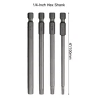 Beschreibung Features: *4 Different Type of Head: for Torx/ Hex Head/ Cross/ Flat Head Slotted Tip. *Made of alloy steel; for steel material color. *With magnetic, can suck the screws easily when using. *1/4-Inch hex shank widely used on electric screwdrivers, hand screwdrivers, cordless drills, . *Exquisite workmanship, each edge can accurately lock the screw without damaging the screw or the screwdriver head. Specifications: *Product Name: Screwdriver Bits *Material: alloy steel *Color: Silver(As Pictures Show) *Optional Types: A: SL3, SL4, SL5, SL6 B: PH2*Φ4, PH2*Φ4.5, PH2*Φ5, PH2*Φ6 C: T8/10/15/20 D: H3, H4, H5, H6 *Size of shank: 6.35 mm/ 1/4 inch hex *Length: approx. 100mm *Quantity: 4pcs Package Contents: 4 x Screwdriver Bits Note: 1.The real color of the item may be slightly different from the pictures shown on website caused by many factors such as brightness of your monitor and light brightness. 2.Please allow slight manual measurement deviation for the data. POLICES Shipping Payment WARRANTY We only ship to confirmed ebay Order addresses. Please comfirm that your Order address is in line with your shipping address. Please kindly note that the c ombined shipping is not provided because the shipping fee is calculated by weight. Also, the each additional item means exactly the the same color and size. It takes about 7 -15 working days to US; about 10-30 working days to other countries. Transit time may be a little delayed because of the bad weather and customs inspection . If you do not receive your item within 30 working days since payment finished, please contact us immediately for further assistance. Payment must be completed within 5 days. If you have any problems about payment, please contact us via ebay message. We strive for 100% customer satisfaction! Positive Feedback is very important to us. If you have any questions, p lease feel free to contact us via "Ask seller a question" . We will reply your email within 24 working hours.