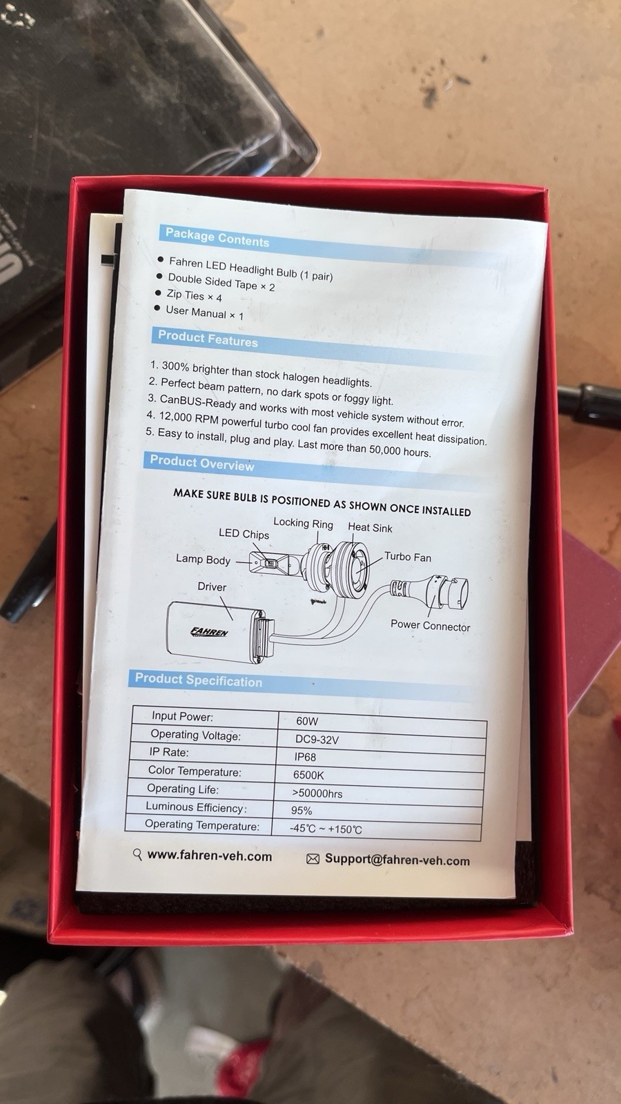 New, Open box. I bought these for a vehicle but traded it in before I ever installed these Description Same design as halogen bulbs. New Gen Japanese Tech. +220% brighter than standard bulbs. Flawless beam pattern. Incredible reliability. Passed 300℉-7 days high-temperature test. Adjustable Beam. Special design required by Dodge Ram, Chevy, GMC, Honda etc. Mini fans. Compatible with most OEM bulbs dustcover. What You Get: Pack of 2 led bulbs , one user manual, over 50000 hours lifespan, IP67 waterproof, 7-24 HIKARI WINGS support. The Amazon filter system may not be 100% accurate or up to date. If you are not sure which bulb size that your vehicle requires, please search the "automotive bulb look-up."