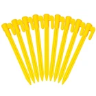 Package Included: 60 Pcs Plasitc Landscape Stakes QUALITY MATERIALS - Made from durable and lightweight ABS plastic materials. Each plastic stakes weighs just about 0.3 ounces but unbreakable - 5.7 inches long. MORE PRACTICAL - Unlike metal, plastic pegs won't rust or deteriorate - reusable and easy to store in your camping backpack or gardening shed for future projects. ESSENTIAL ACCESSORIES - Great accessories for anchoring garden netting, camping tents, rain tarps and landscape fabric lawn edging. COST-EFFECTIVE - With 60-Pack plastic stakes in every package, hikemax is offering more quality plastic stakes at less cost than similar stakes on the market. HIGH VISIBILITY AND CONVENIENCE - In bright yellow, these plastic stakes WILL NOT BE LOST in the long grass. No-slip hook is designed for easy removal.