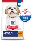 Hill's Science Diet Adult 7+ Small Bites dry dog food is formulated for specific aging needs. Provides easy-to-digest nutrition with a synergistic blend of ingredients to help support energy & activity level. Delicious chicken flavor in a small bite size for those that prefer variety. Balanced minerals for heart & kidney health Omega-6s & Vitamin E for beautiful skin & coat High-quality protein for lean muscles Recommended for: Adult dogs 7+ years of age. Not recommended for: Puppies and pregnant or nursing dogs. During pregnancy or nursing, dogs should be switched to Hill’s Science Diet Puppy, Hill’s Science Diet Puppy Small Bites or Hill’s Science Diet Puppy Small Paws dry dog food.