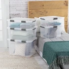 You may also like Clear 40 Qt Storage Boxes and Totes Stackable Organizing Clothing Bedroom Closet 21.28 USD Free shipping Clear Storage Bin 41Qt Plastic Container Snap-On Lid Stackable Home Organizer US 45.72 USD Free shipping Clear Plastic File Box W/ Snap-On Lid Letter Legal Size Storage Organizer New 15.25 USD Free shipping Clear Storage Bin Snap-on Lid Stackable Container Home Organization 58 Quart New 33.98 USD Free shipping 2 Pack Clear Plastic Desktop Drawer Organizer 3 Drawer Stackable Storage Unit US 32.94 USD Free shipping 40Qt Carry Plastic Storage Bins W/ Full Grip Handles 2 Pack Ideal Organizing New 47.07 USD Free shipping 17 Gallon Tough Storage Bin Plastic Container Snap-On Lid Stackable Organizer US 24.43 USD Free shipping Clear Storage Bins 17qt 2 Pack Adjustable Dividers Stackable Organizing New 23.7 USD Free shipping 18Gal Plastic Tote Box Titanium Storage Containers Set of 8 Stackable Bin w/Lid 132.78 USD Free shipping 70 Quart EZ Carry Plastic Storage Bin W/ Full Grip Handles Stacking Tote Clear 20.11 USD Free shipping Clear Plastic Storage Boxes W/ Latching Airtight Lid Home Office Organization US 23.49 USD Free shipping 20 Qt Clear Plastic Storage Bins W/ Gasket Lid 6 Pack Stackable Organizers New 21.39 USD Free shipping Great organization “hinges” on the ideal solution for your storage challenge… And here is a brand new Clear Storage option! The HingeLID Storage Box line combines popular features such as a hinged lid for easy access, clear lid and base for quick identification of contents, and a stylish textured pattern for a décor touch! The innovative hinged lid stays open unassisted, allowing you to use both hands, for careful handling of stored items. The lid stays attached, so no worry of it getting misplaced! For easy clean up, snap the color-accented latch to secure the lid to the base and transport the Storage Box with ease using the textured, comfort-grip handles. The 20 Quart HingeLID Storage Box is ideal for sorting and storing anything from clothing and accessories to craft supplies, health and beauty items, toys, and more. Once your items are stored, the clear lid and base allows for easy viewing and retrieval of your belongings. The 20 and 30 Qt HingeLID Storage Boxes use the same lid, allowing both shallow and deep sizes to be stacked on the same footprint. The indexed lids allow for secure stacking and efficient use of that vertical storage space. The HingeLID Storage Box line is available in five sizes, ranging from 20 Qt to 80 Qt, and designed with a modern profile and textured pattern. Pick up the sizes that are best for you and dress up your storage today! The overall assembled dimensions of this item are 18 5/8" L x 14" W x 7 3/8" H. 20 Qt HingeLID Storage Box, Dark Gray, 6 Count Outside Dimensions: 18 5/8" x 14" x 7 3/8" Interior Dimensions at bottom: 15 1/2" x 10 1/4" x 7" Versatile, all-purpose solution, ideal for a variety of household storage needs Hinged lid allows for easy access to contents and ensures that the cover is never misplaced Clear lid and base allow for contents to be viewed at a glance and easy to find Sturdy, color-accented latch secures lid to base, keeping contents safely stored inside Modern, decorative and textured pattern featured throughout the item – on the lid, latch and handles Comfortable handles make lifting and transporting easy BPA-free and phthalate-free You may also like Heavy Duty Tarp 10'X12' Waterproof Mildew Resistant Rustproof Grommets Durable 32.94 USD Free shipping Plastic Coat Hook Garment Racks Storage Organizer Heavy Duty 1 Hook 4224BL New 48.6 USD Free shipping Easy Hang Shower Curtain Waffle Weave Waterproof Liner Hook Machine Washable New 23.21 USD Free shipping Miracle Guard Dog Pads 3X Absorbency Leak Proof Quick Dry Odor Control New 39.95 USD Free shipping Simulated Leather Duffel Bag W/ Zippered Pocket Adjustable Strap Sports Gear New 44.99 USD Free shipping All Natural Fire Starters 50 Count Eco Friendly Non Toxic Indoor Outdoor Use 33.49 USD Free shipping Sugar Free Fiber Powder 125 Count Natural Clear Dissolves in Food Beverages New 21.39 USD Free shipping 2-Pack Cereal Storage Container BPA-Free Flip Top Lid 24 Cup Dispenser New 18.65 USD Free shipping Sound Activated Animatronic Ghost Halloween Decoration Indoor Outdoor Scares New 45.96 USD Free shipping Sensitive Stomach Dry Cat Food Chicken Rice Peas Kibble Natural Fiber 3lbs New 30.57 USD Free shipping 4 Opening Collage Frame 4x6 Durable Plastic Wall Display W/ Glass Front New 25.26 USD Free shipping Non-Clumping Cat Litter Odor Control Formula Multi Cat 24/7 Performance 48lb New 23.77 USD Free shipping