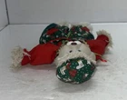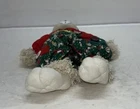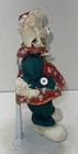This charming set of Christmas figurines features a pair of whimsical bunnies named Hip and Hop. Crafted from a mix of ceramic, porcelain, and fabric materials, these vintage House of Lloyd collectibles are sure to bring a smile to any holiday display. The red and green color scheme and animal-shaped design make them perfect for a Christmas-themed decor, and the intricate details add to their overall charm. The set was manufactured in 1995 and includes two figurines, standing at 24 inches in height.