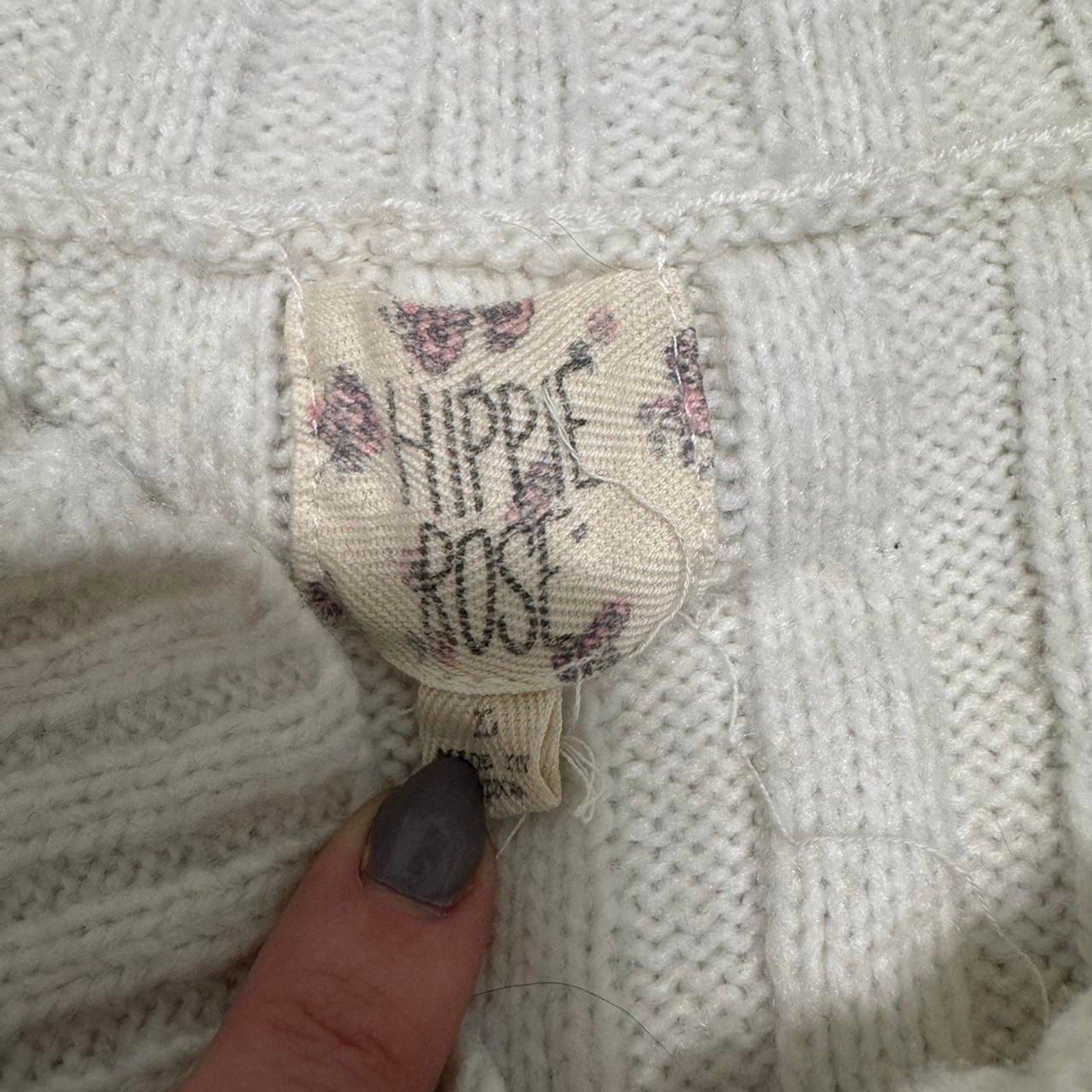 Trendy and cozy Hippie Rose knitted cropped sweater in crisp white. Designed with long sleeves and a soft polyester knit, this piece is perfect for layering and adds a modern touch to casual outfits. Style Ideas: Pair with high-waisted jeans and sneakers for an everyday look Style with a mini skirt and boots for chic Y2K vibes Layer over a slip dress for an effortless boho-inspired outfit Size: Women's Large Color: White Fabric: 100% Polyester Measurements: See photo Condition: Excellent pre-loved condition Keywords: Hippie Rose white sweater, women's large cropped sweater, long sleeve knit pullover, trendy Y2K sweater, cozy polyester knit top