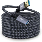 Hisatey USB 3.0 Extension Cable 20 FT Long USB Extension Cable Nylon Braided USB Male to Female Cable Heavy Duty USB Extender USB3.0 FAST CHARGING & DATA SYNCING:Charging and data transmission two in one, the charging speed is up to 2A, and the data transmission speed is 10X faster than USB2.0 cable, also, this USB 3.0 extension cable backwards compatible with USB 2.0 and USB 1.1 standard devices Super Performance: With this USB extension cord, you can extend your device to a more convenient location to connect another USB device, just plug and play, no driver needed. Perfectly suitable for enjoying video at TV from flash drive or hard drive,convenient your daily life with super performance Flexible & Durable: This usb to usb extension cable triple shielding of tinned copper, aluminum foil and ground wire ensure stable and fast data transferring without noise or signal loss. The flexible and wear-resistant nylon braided make the cable bend over 10000 bending, no tangling worries and more durable for a longer lifespan Universal Compatibility: This long usb cable extension is Perfect length, with which you can use to extends your USB connection to your computer, as well as a variety of USB peripherals : We provide this USB 3 Extension Cable with worry-free 36-month and friendly customer service, if you have any questions, we will resolve your issue (Please plug our usb3.0 extension cable into rear USB interface of motherboard directly, don't connect through USB hub,Because with the extension length of cable, the voltage attenuates which will cause the some devices doesn't work) Product Description 10000+ Bend Lifespan With the test of 10,000+ bends, the special SR design makes the cable joints more durable, prolonging the cable service life. Universal Compatibility Compatible with PC, laptop, tablet, Macbook Phone, lights,Webcam, camera, dashcam, USB hub, Mouse, keyboard, Printer, scanner, hard drives, flash drives and More Perfect Length for Daily Use Feel free to connect your computer, or lie on the sofa to play game and watch video while you are charging.