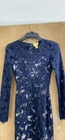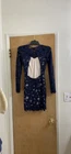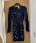 The H&M mini lace party dress in blue is designed for women in size 2, featuring long sleeves and an open back. This dress is perfect for a party or cocktail event, with its elegant lace fabric and mini length style adding a touch of sophistication. The open back detail adds a hint of allure to the overall look, making it a stylish choice for a special occasion.