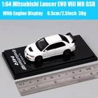 Very Small, Please Check Before Purchase! Mitsubishi Lancer Evolution VIII MR GSR with Engine Display Model Brand:Hobby Japan Scale: 1:64 Size:6.5cm/2.5Inch 30g(Car Only) Material: Car Shell Is Metal+Rubber Tires+ Other Part Is Plastic Sound/Light:No Pull Back:No Steering Move:No Wheels Move:Yes Doors Open: No Bonnet Open:No Original Acrylic Box: Yes