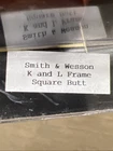 Hogue Checkered Pau Ferro Finger Groove Grip for S&W K/L-FRAME, SQUARE BUTT New unopened package Grip is for Smith & Wesson K and L Frame square butt revolvers. Fits Models: 10, 12, 13, 14, 15, 16, 17, 18, 19, 24, 48, 53, 64, 65, 66, 581, 67, 547, 576, 671, 686 Made from: Pau Derro