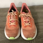 The Hoka One One Arahi 7 Running Shoes in women's size 8.5B in Papaya Coral are a versatile and stylish option for active wear. Featuring arch support, cushioning, and a lightweight design, these sneakers are perfect for a variety of activities including running, hiking, and even casual wear. With a breathable fabric lining and rubber outsole, these shoes provide comfort and performance in any season. The Hoka One One brand is known for producing high-quality athletic footwear, making these shoes a reliable choice for those seeking both style and functionality. Please exMine pictures closely. Shoes are in good condition but, do show signs of normal wear. Shoes are not perfectly clean and have several soiled areas.