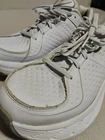 Hoka One One Gaviota LTR Shoes Womens Size 10 White Leather Walking Running 1019575 Condition: Good used condition with visible signs of wear. Scuffing and discoloration on the leather trim around the toes and edges. Uppers and soles show some dirt and evidence of wear, as seen in photos. No major structural damage noted. White leather upper construction with breathable perforations. Hoka One One logo on the heel and insole. Model: W Gaviota LTR (1019575 WHT, F2721DF). Size: Womens US 10, UK 8.5, EU 42 2/3, JPN 27 (confirmed by size tag and Hoka's sizing chart for women's models) Supportive, cushioned midsole for maximum comfort and stability, designed for walking or running Durable rubber outsole with hexagonal tread pattern for traction Tag reads "Hoka One One" and includes full style and size information See close-up images for all condition details and tag information
