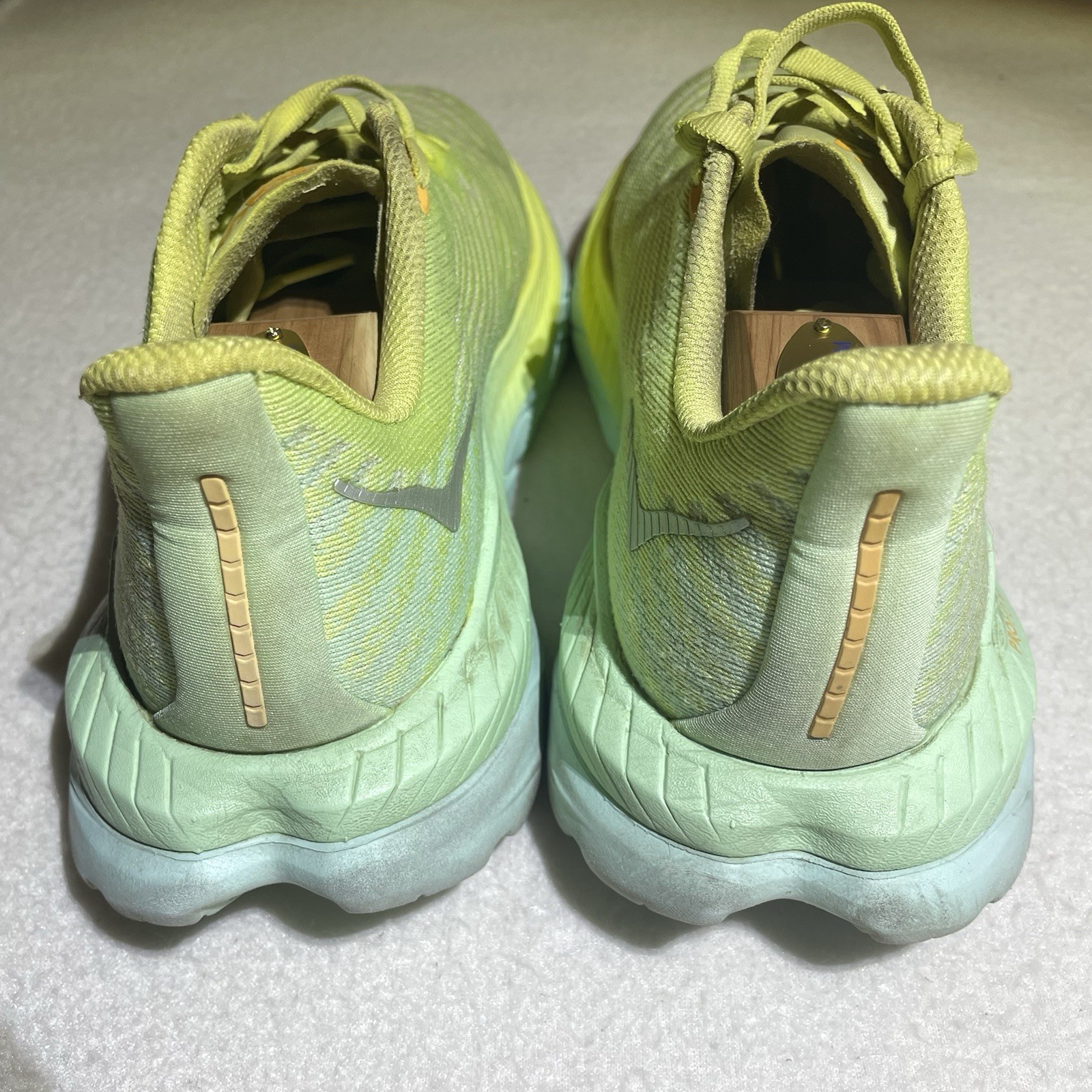 -Used. Sold as is -See photos for detail -Fast shipping!!! The Hoka One One Mach 5 Shoes are stylish and functional running sneakers in a vibrant citrus glow color. Cushioned and lightweight design, for casual outings or active pursuits like running, walking, tennis, or weightlifting. With a low-top shoe shaft style and breathable synthetic upper material, these sneakers offer comfort and support. These Hoka One One shoes are a versatile addition to any active wardrobe.